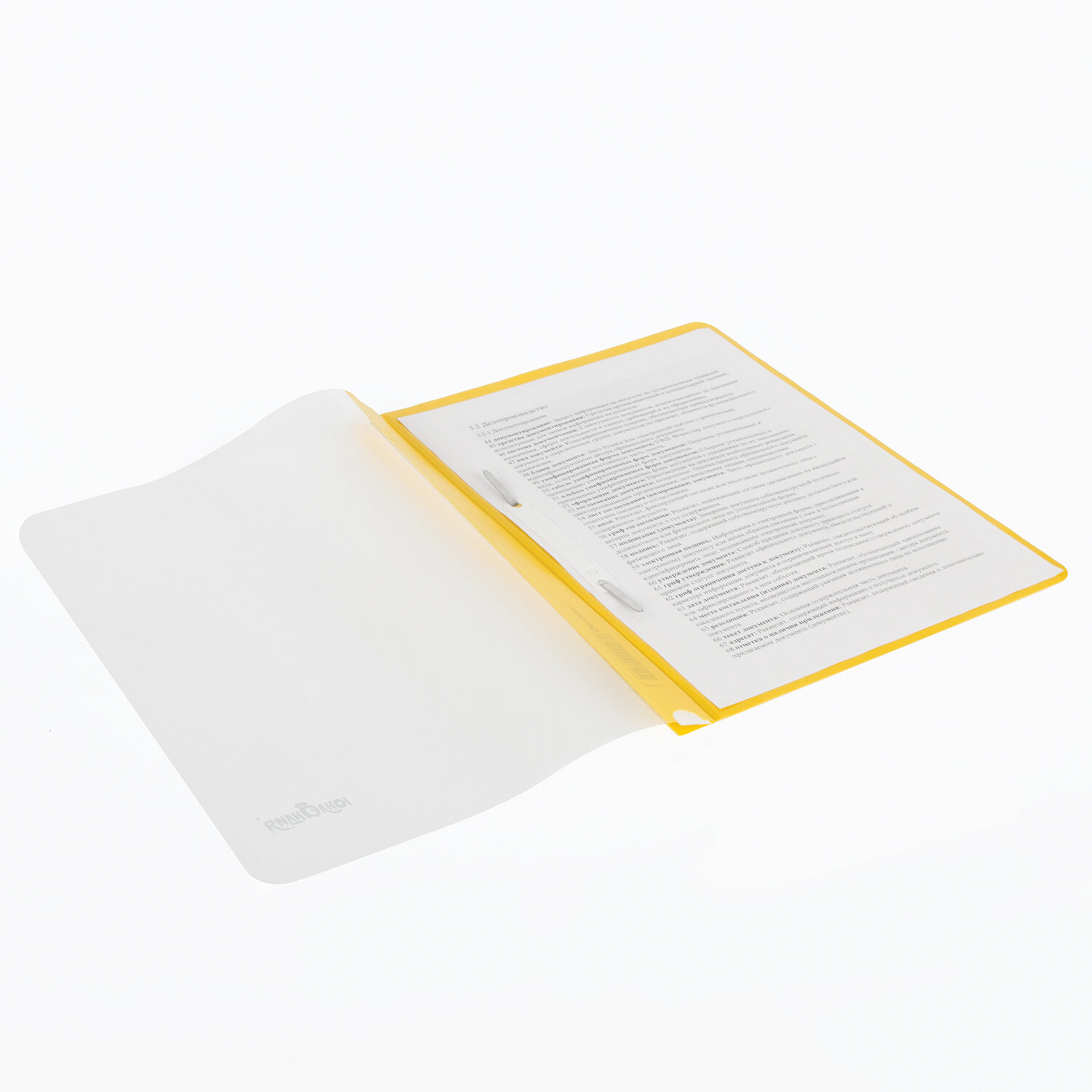 Фиксирует до 100 листов формата А4. Толщина пластика для верхнего листа - 130 мкм, для нижнего - 180 мкм. Предельно простой механизм подшивки: металлические усики и пластиковая планка для надежной фиксации документов. Скоросшиватель изготовлен из полипропилена. Снабжен прозрачным верхним листом. Для идентификации имеет сменный пластиковый корешок. Благодаря фактуре t;песокt; и яркому желтому цвету обложки важная папка никогда не затеряется на полке. Скоросшиватель пластиковый ЮНЛАНДИЯ, А4, 130/180 мкм, желтый 228677