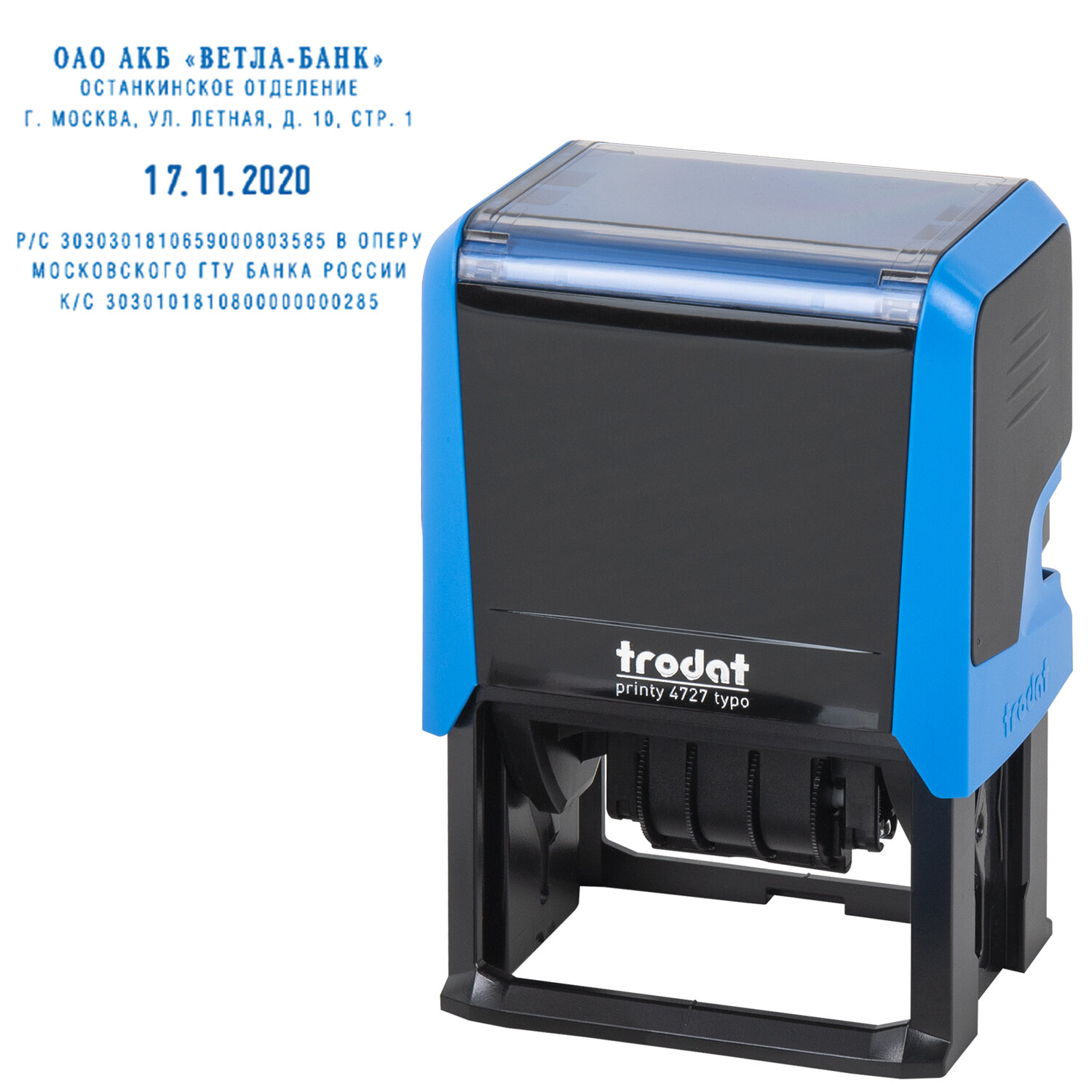 - Датер самонаборный 6 строк+дата, оттиск 60х40 мм, синий, TRODAT 4727 Bank, КАССЫ В КОМПЛЕКТЕ, 188551