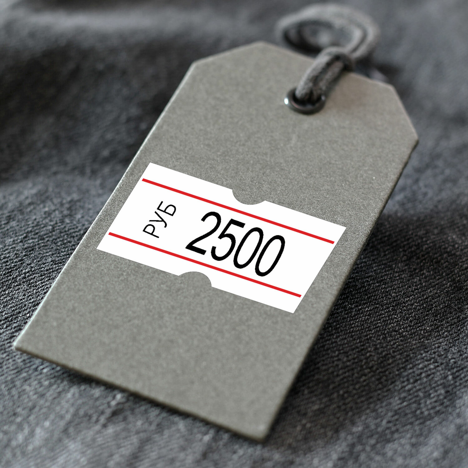 - Этикет-лента 21х12 мм, прямоугольная, белая с красной полосой, комплект 5 рулонов по 600 шт., BRAUBERG, 123568