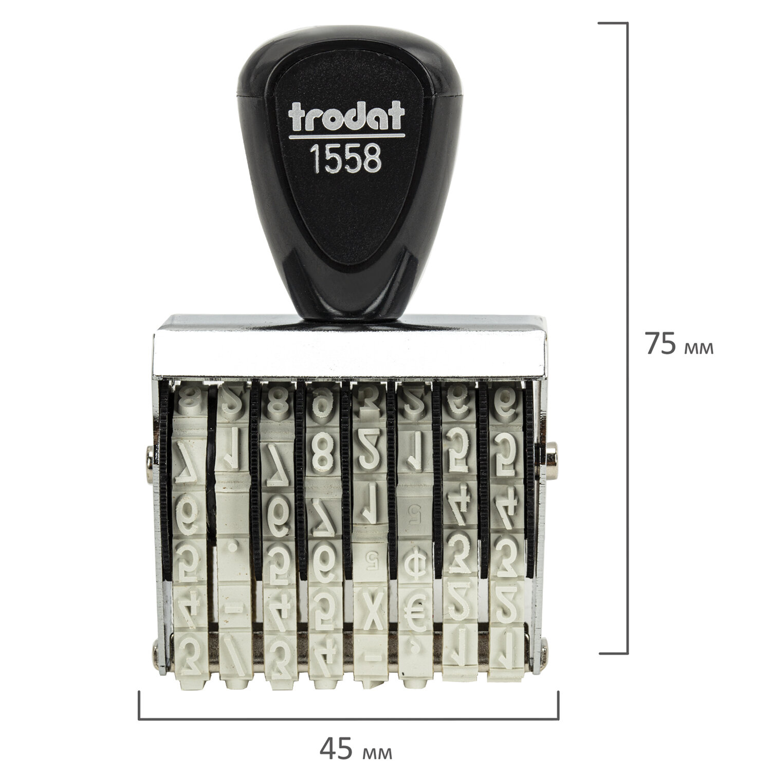 - Нумератор ручной ленточный, 8 разрядов, оттиск 38х5 мм, TRODAT 1558, 86111