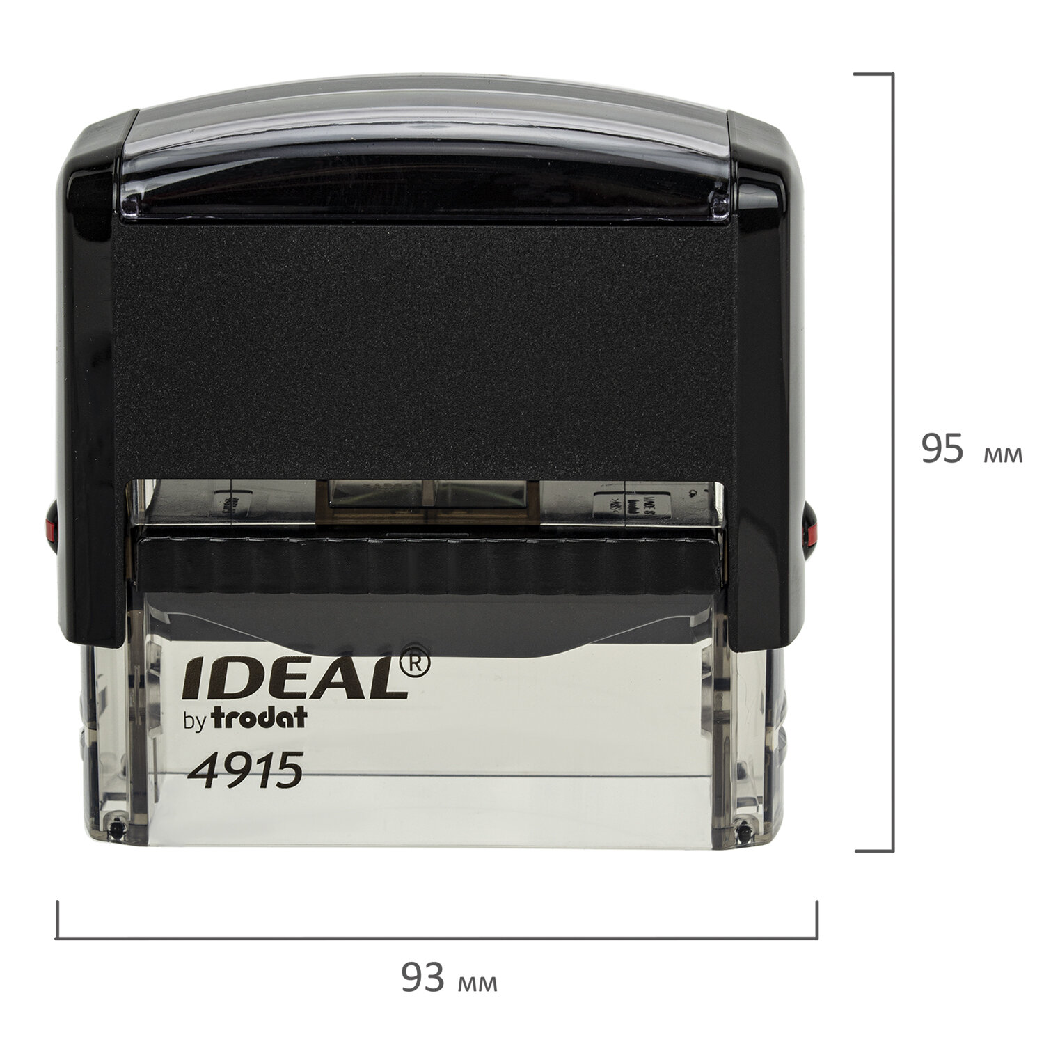 Размер текстовой платы 70х25 мм. Модель оснащена кнопками блокировки для обеспечения удобства смены подушки и нанесения клише. В комплект входят: подушка, скотч для крепления клише, специальный шаблон для размещения на нем оттиска. Оснастка для штампа, размер оттиска 70х25 мм, синий, TRODAT IDEAL 4915 P2, подушка в комплекте, 125429