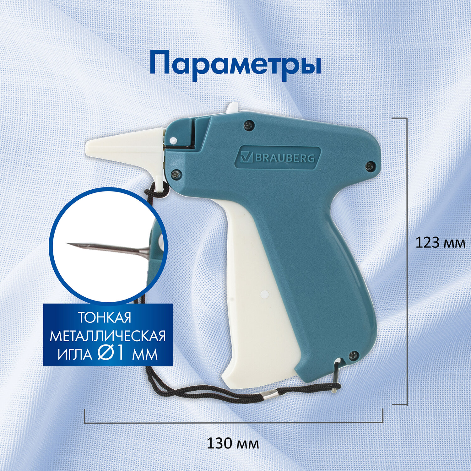 Предназначен для крепления к одежде из обычных и тонких тканей информационных ярлыков, бирок и т.п. с помощью пластиковых соединителей. Для тонких игл. Выполнен в голубом цвете. Вес - 65 г. Размер - 130х126х23 мм. Пистолет-маркиратор игловой, тонкая игла, BRAUBERG, 291038