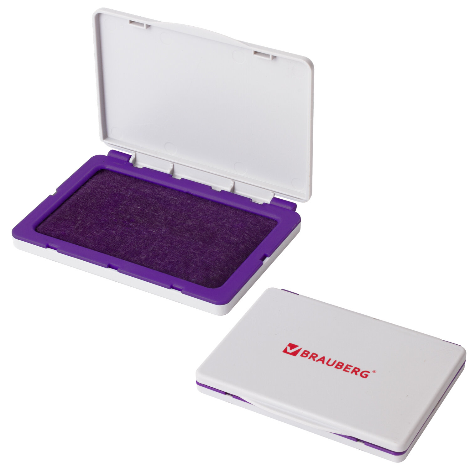 - Штемпельная подушка BRAUBERG, 100х80 мм (рабочая поверхность 90х50 мм), фиолетовая краска, 236869