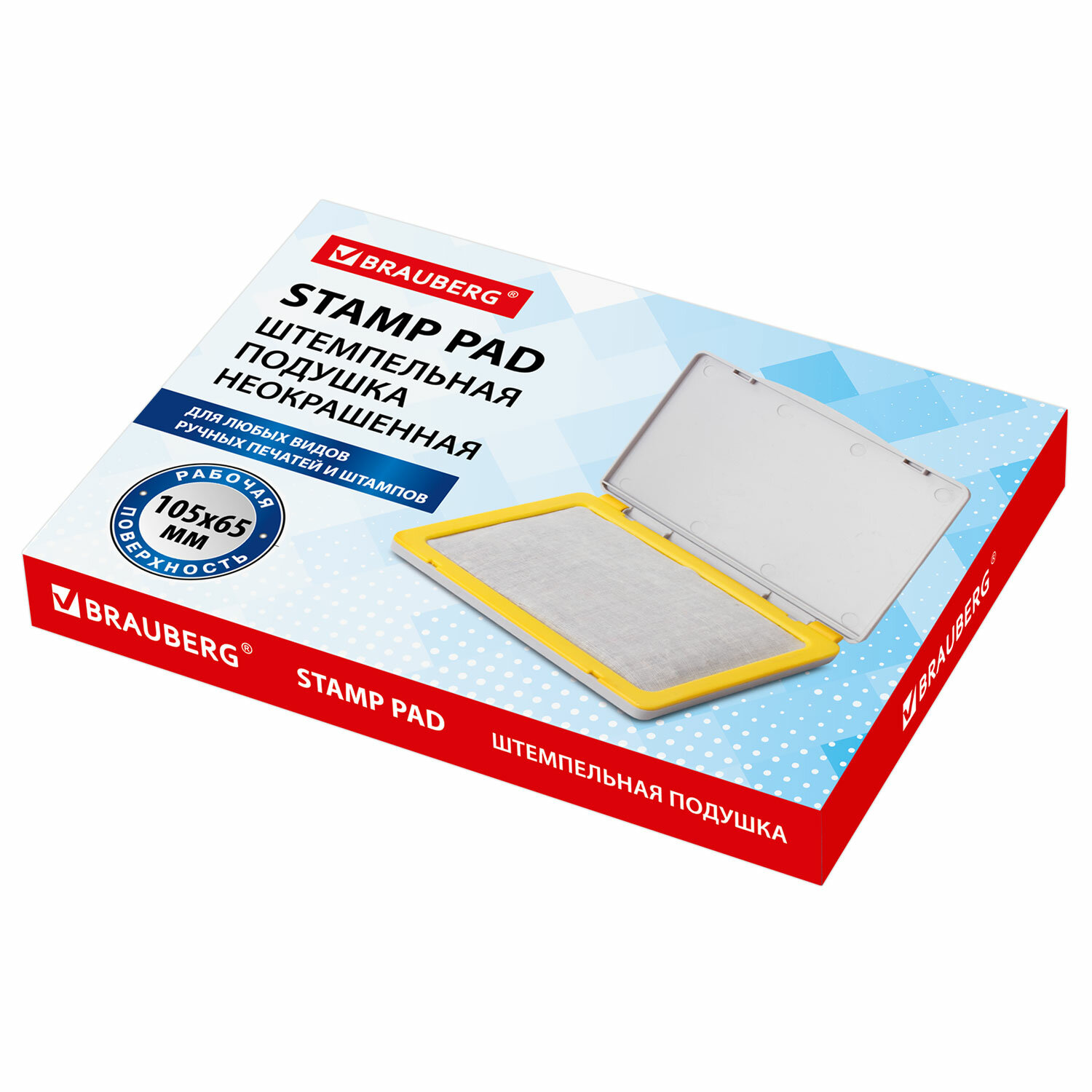 - Штемпельная подушка BRAUBERG, 120х90 мм (рабочая поверхность 105х65 мм), неокрашенная, 236870
