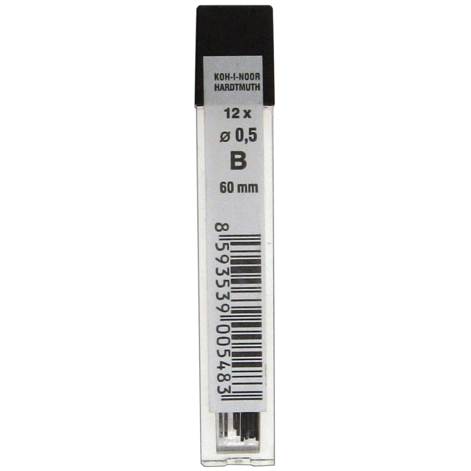Запасной грифель для любых автоматических карандашей. Грифели запасные 0,5 мм, B, KOH-I-NOOR, КОМПЛЕКТ 12 шт., 4152/B, 415200B005PKRU