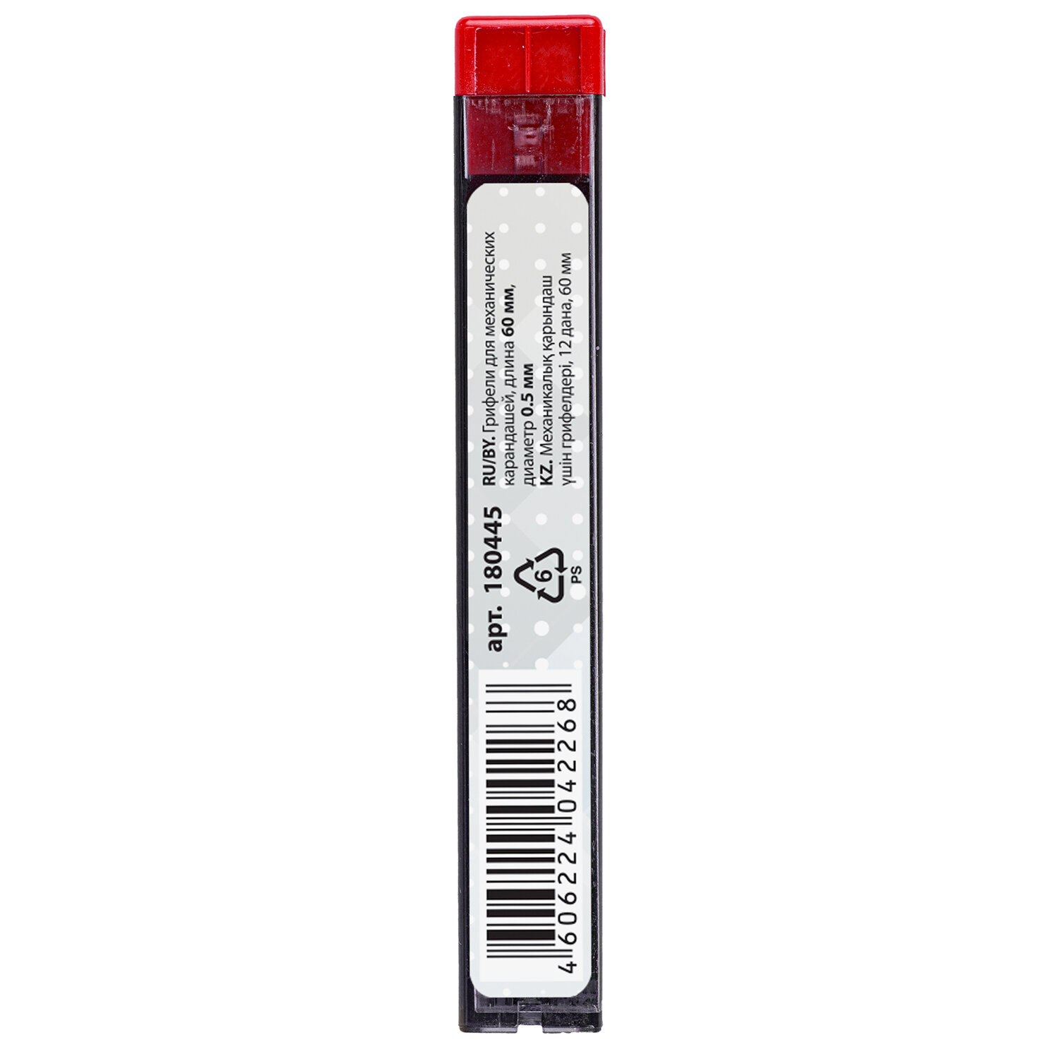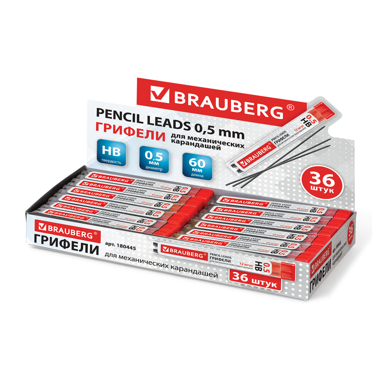 - Грифели запасные 0,5 мм, HB, BRAUBERG, КОМПЛЕКТ 12 шт., "Hi-Polymer", 180445