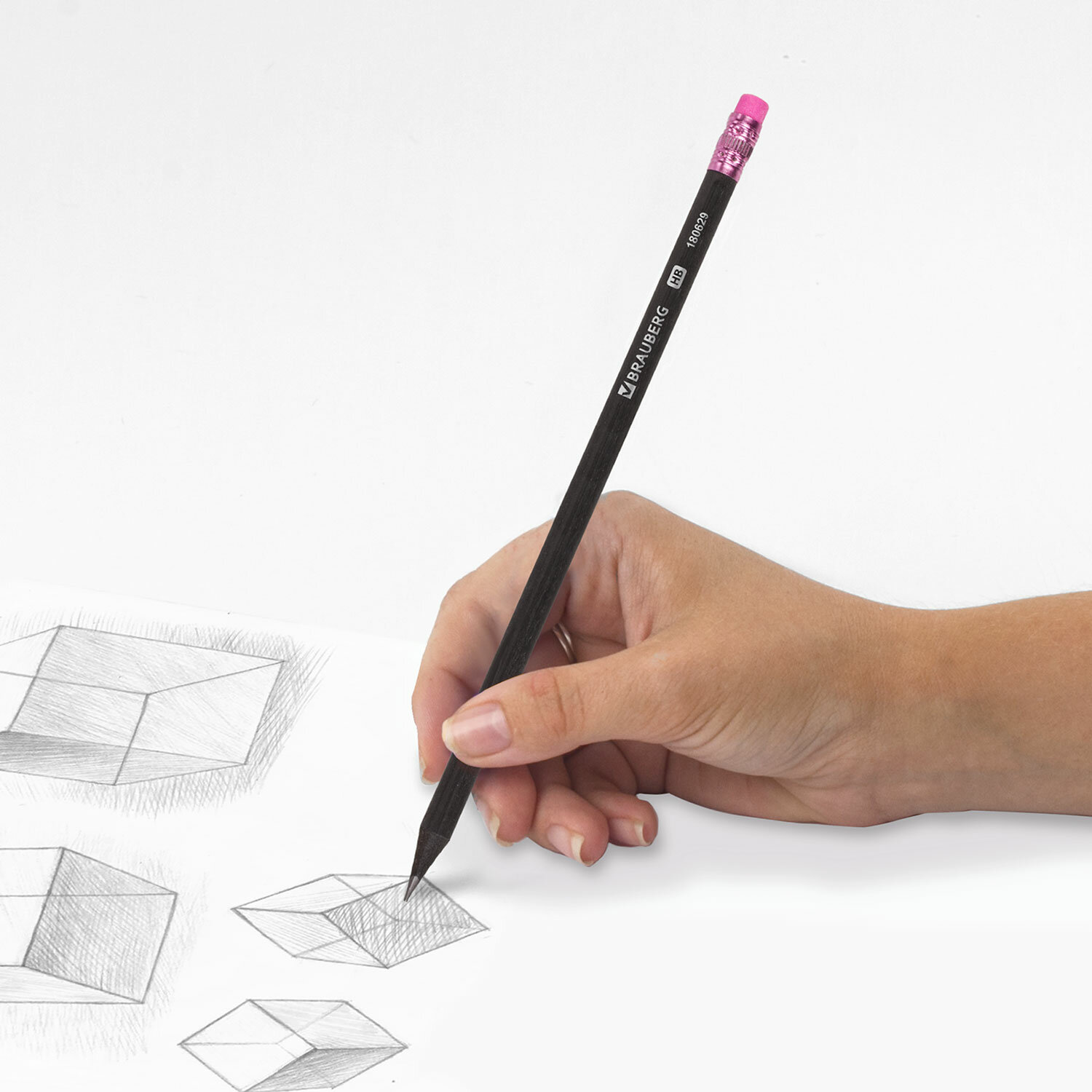 - Карандаш чернографитный BRAUBERG, 1 шт., "Black Wood", НВ, с ластиком ассорти, черное дерево, заточенный, 180629
