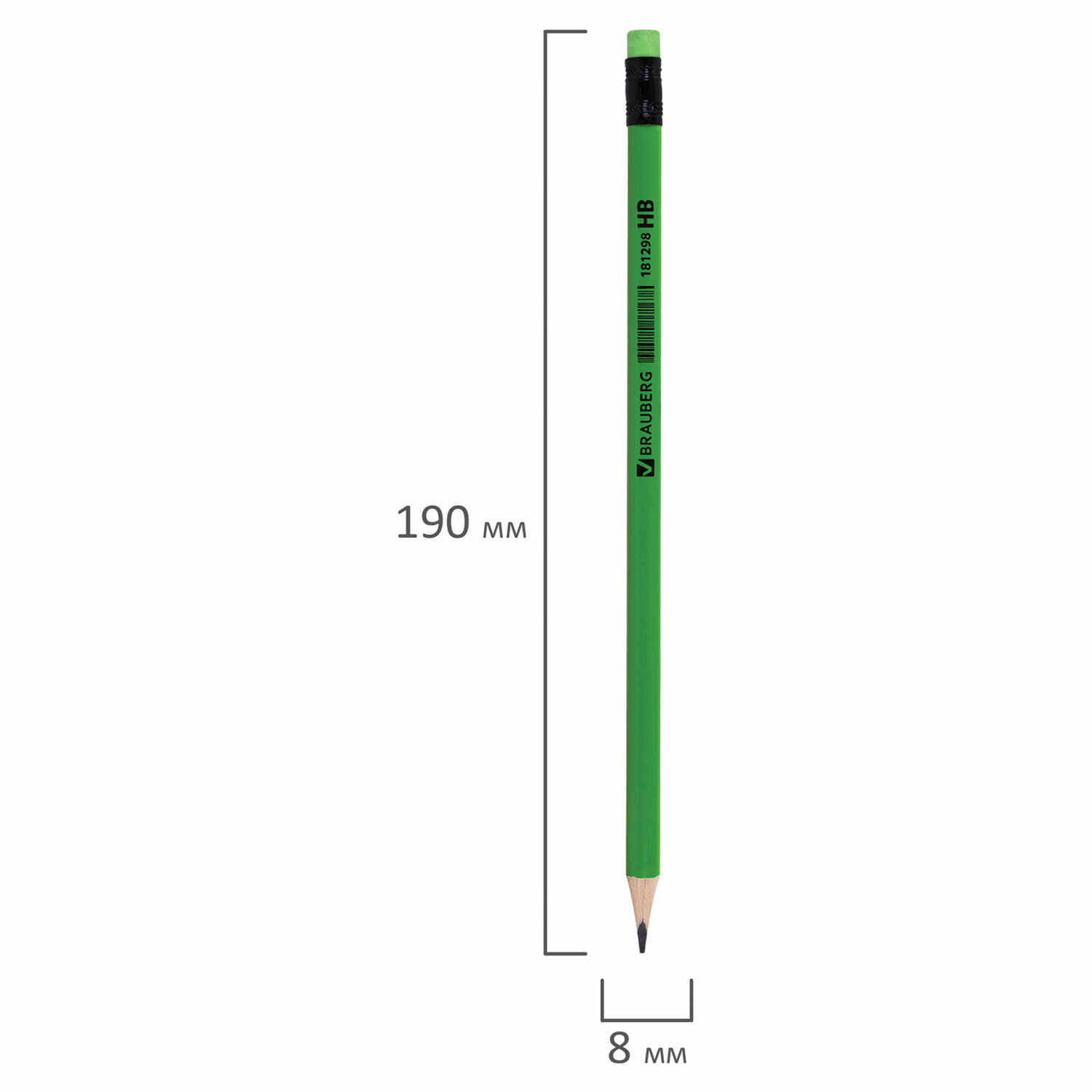 Изготовлен из дерева высокого качества, оснащен ластиком в тон корпуса. Имеет трехгранное сечение. Карандаш длиной 190 мм легко точится и не крошится. Обладает средней степенью твердости – HB. Диаметр грифеля - 2,8 мм. Выполнен в неоновых цветах ассорти. Поставляется заточенным. Карандаш чернографитный BRAUBERG, 1 шт., "Neon", HB, трехгранный, с ластиком, корпус неоновый ассорти, 181298