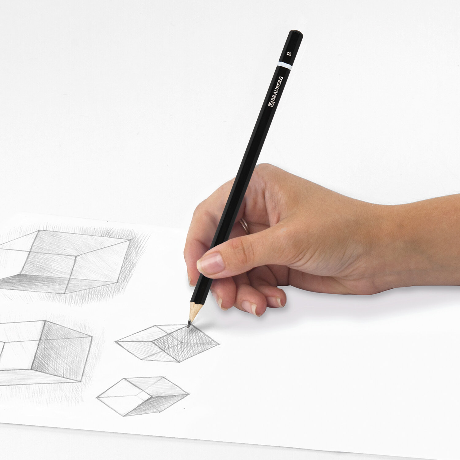Карандаш изготовлен из дерева высокого качества. Имеет шестигранное сечение. Карандаш длиной 176 мм легко точится и не крошится. Твердость грифеля B. Диаметр грифеля - 2,05 мм. Выполнен в черном цвете. Поставляется заточенным. Карандаш чернографитный BRAUBERG, 1 шт., "Touch line", В, корпус черный, заточенный, 180622