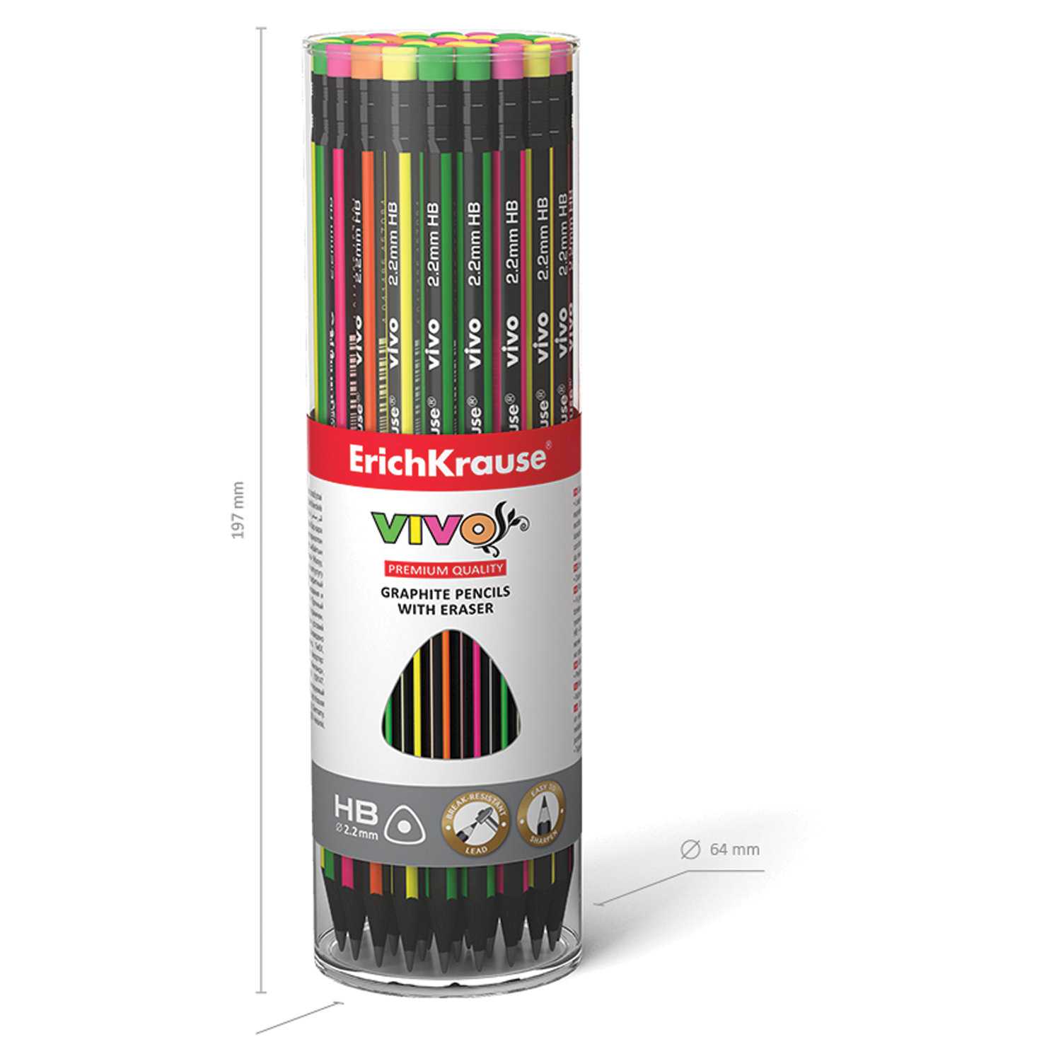 - Карандаш чернографитный ERICH KRAUSE, 1шт., "Vivo", HB, черное дерево, с ластиком, корпус ассорти, заточенный, 45623