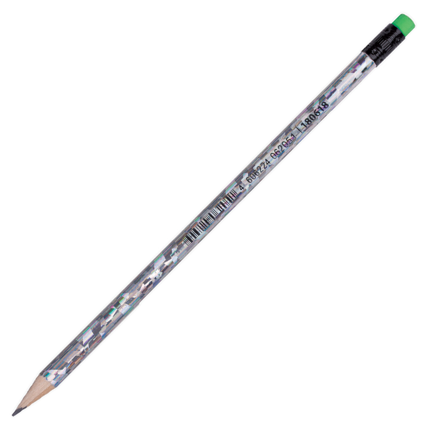 - Карандаш чернографитный ПИФАГОР, 1 шт., НВ, с ластиком ассорти, фольгированный корпус (серебряный), 180618