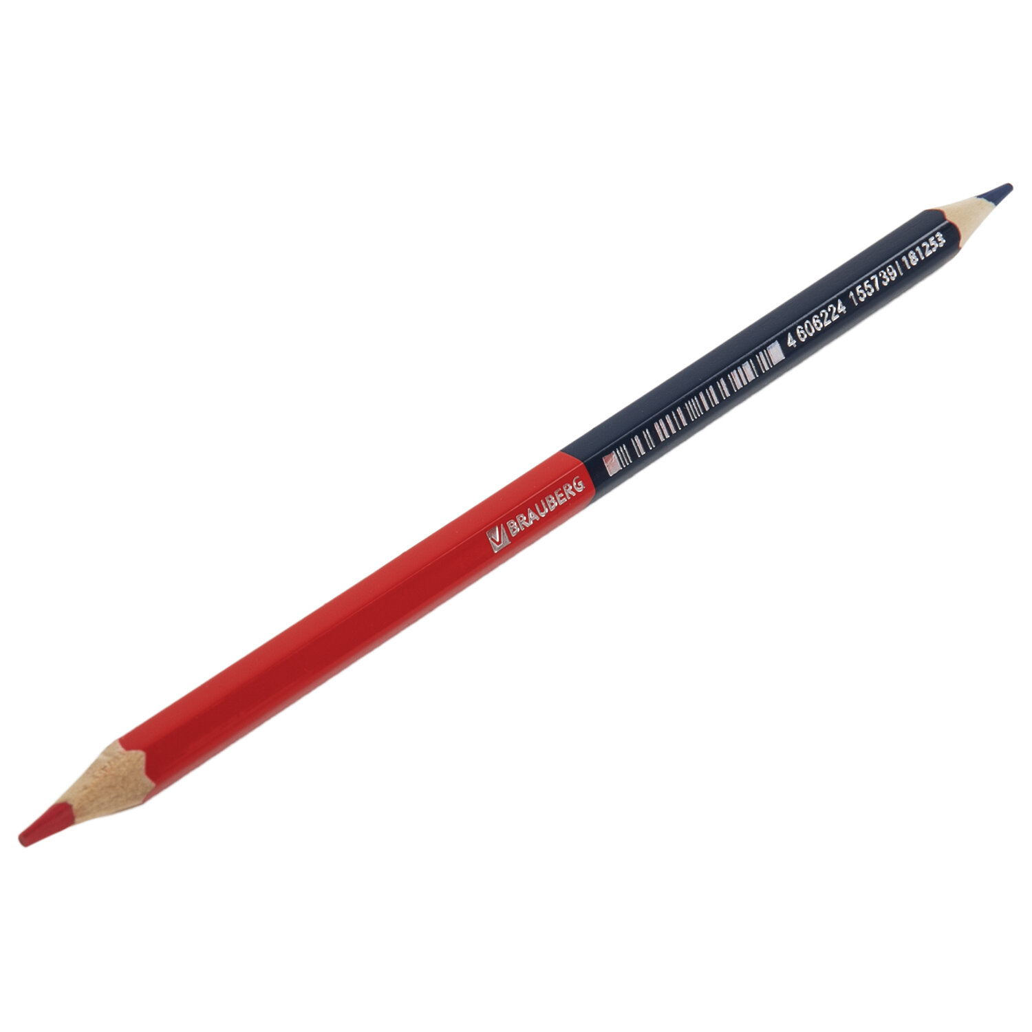 Карандаш двухцветный КРАСНО-СИНИЙ, BRAUBERG, 1 шт., шестигранный, грифель 2,9 мм, натуральное дерево, 181253