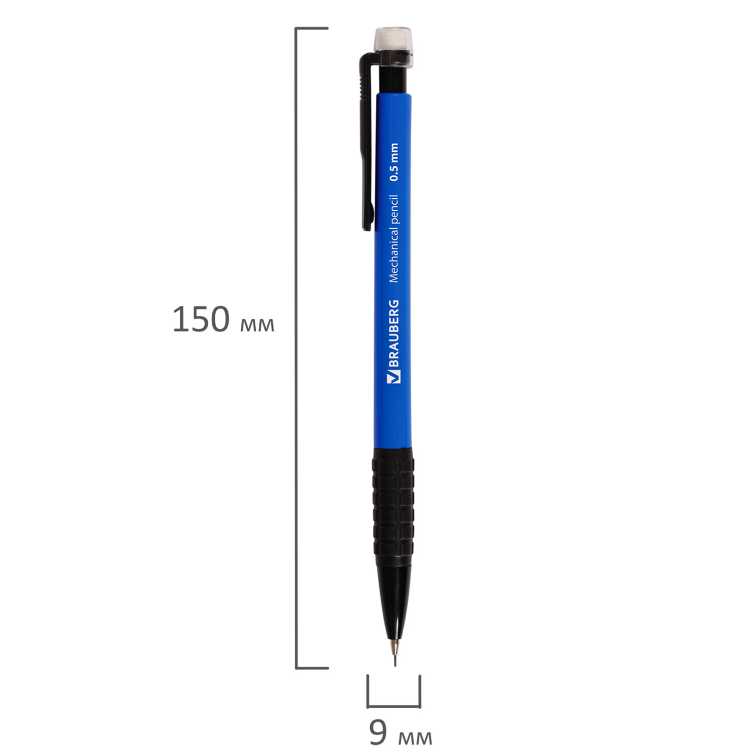 - Карандаш механический 0,5 мм, BRAUBERG "Comfort", ластик, резиновый грип, корпус синий, 180283