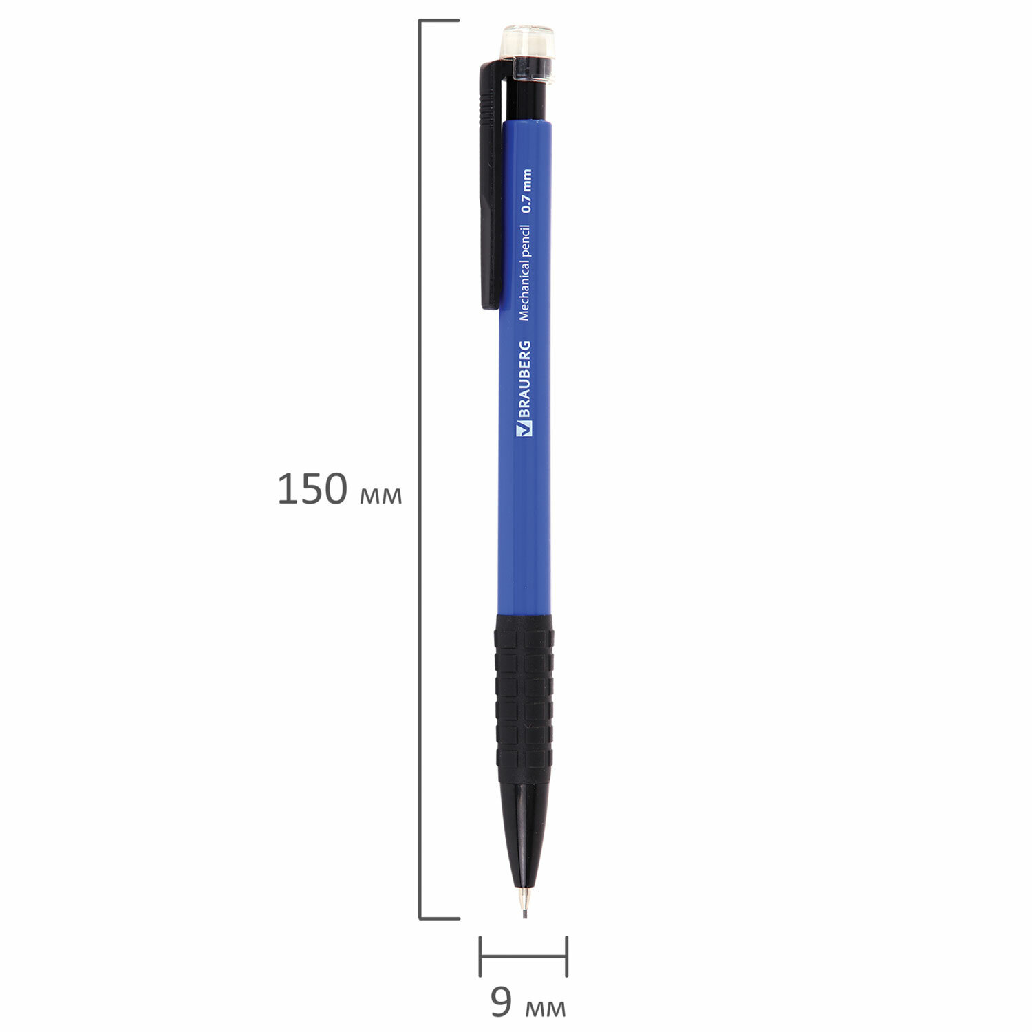 - Карандаш механический 0,7 мм, BRAUBERG "Comfort", ластик, резиновый грип, корпус синий, 180464