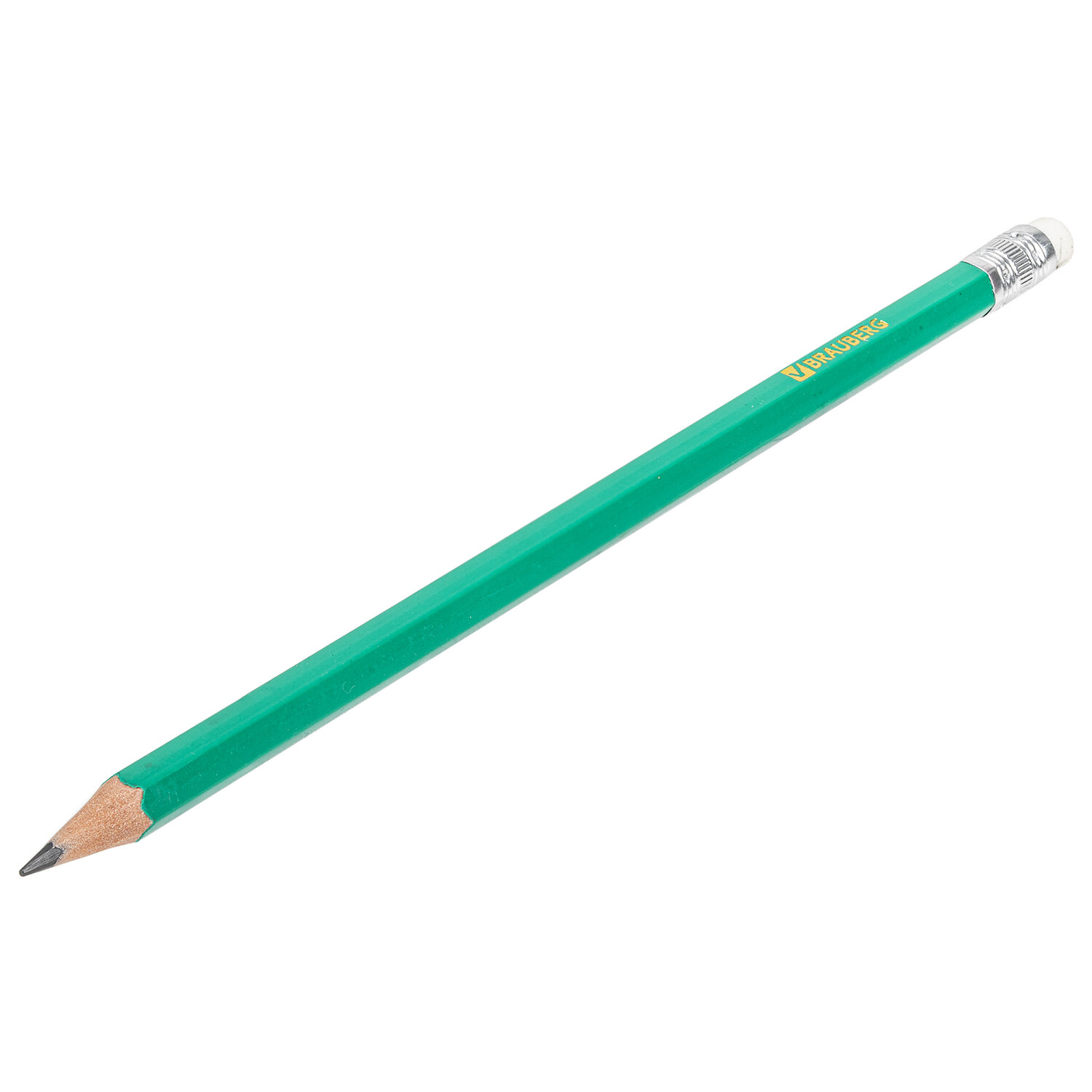 - Карандаши чернографитные BRAUBERG НАБОР 12 шт., НВ, с резинкой, пластиковый зеленый корпус, 180678