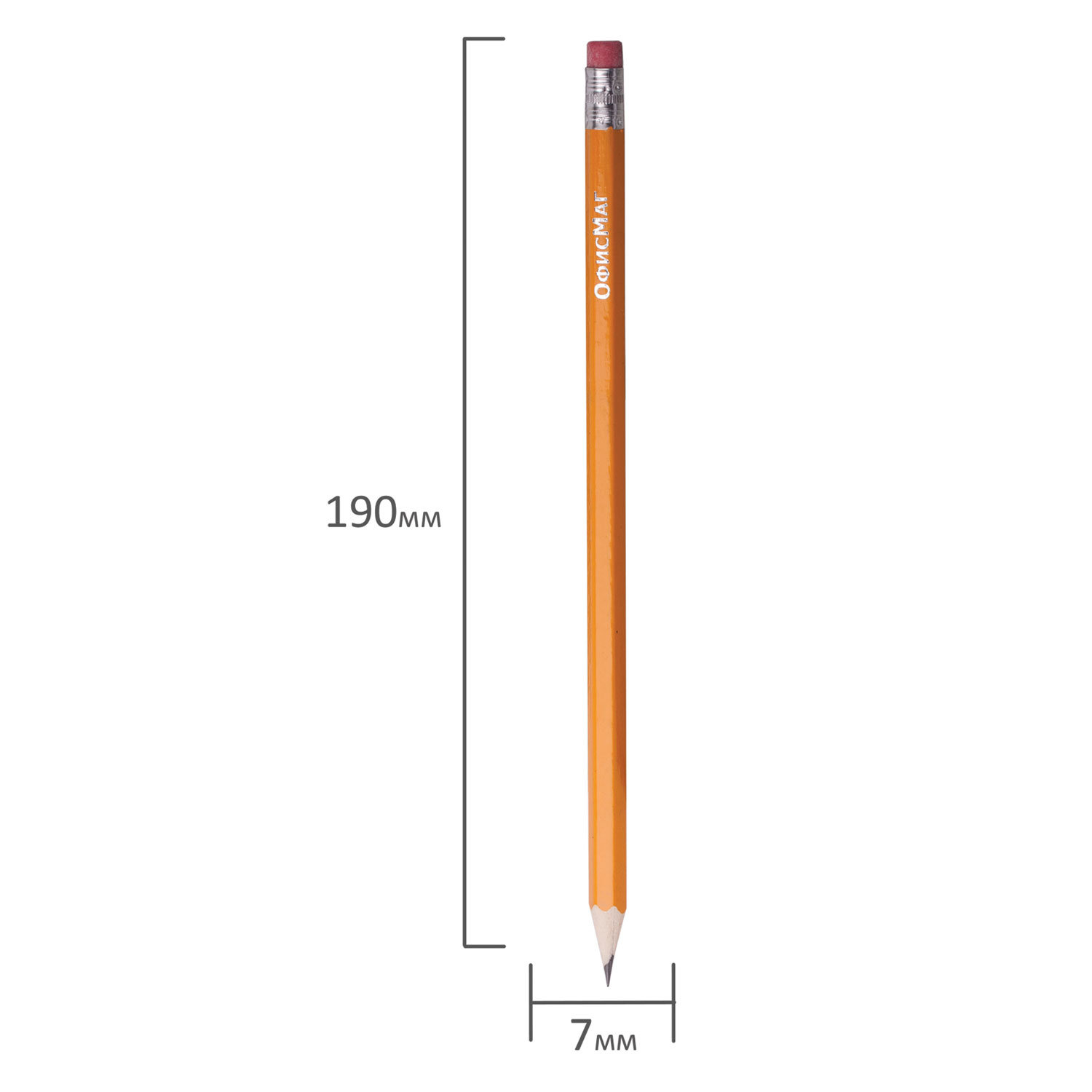 Карандаши изготовлены из дерева высокого качества. Имеют шестигранное сечение. Карандаши длиной 190 мм легко точатся и не крошатся. Обладают средней степенью твердости – HB. Диаметр грифеля - 2,05 мм. Выполнены в желтом цвете. Поставляются заточенными. Карандаши чернографитные простые с ластиком HB, ВЫГОДНАЯ УПАКОВКА КОМПЛЕКТ 48 штук, ОФИСМАГ, 180639