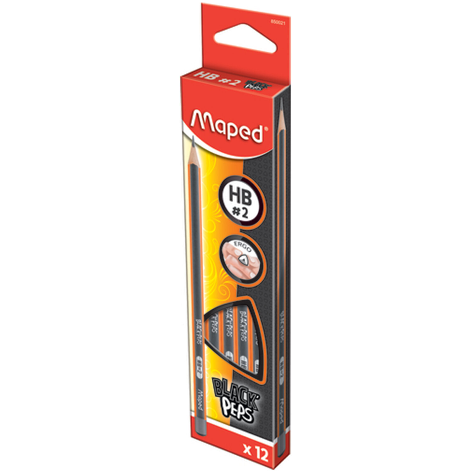 - Набор карандашей чернографитных MAPED (Франция), 12 шт., "Black Pep's", НВ, трехгранные, без резинки, 850021