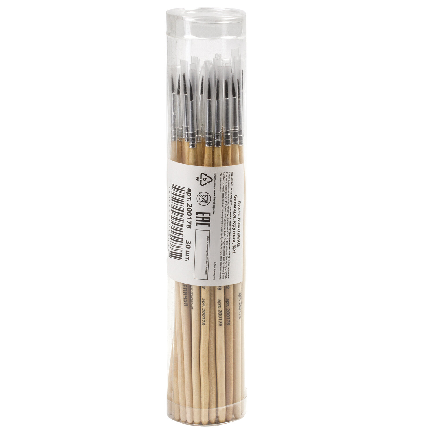 - Кисть BRAUBERG, белка, круглая, № 1, 200178