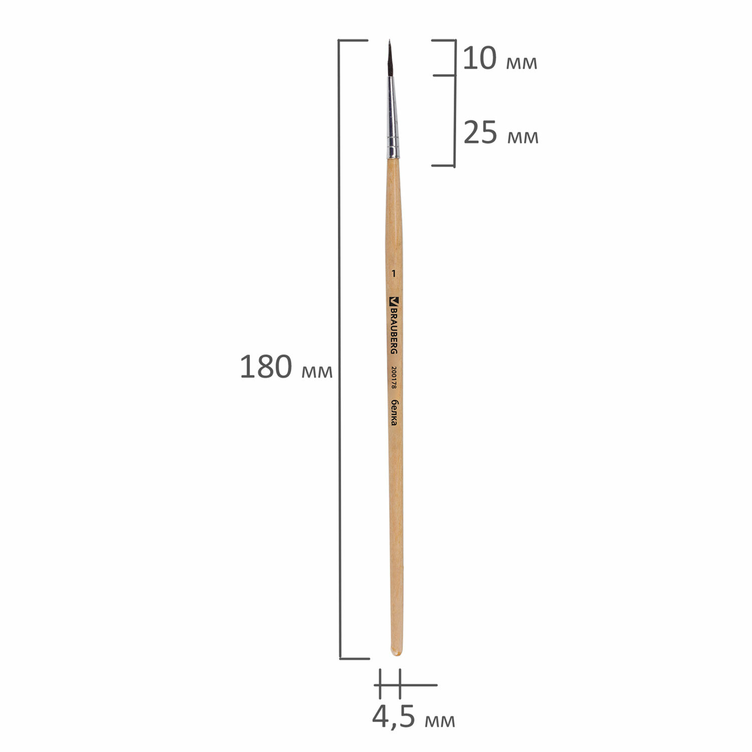Кисть BRAUBERG, белка, круглая, № 1, 200178