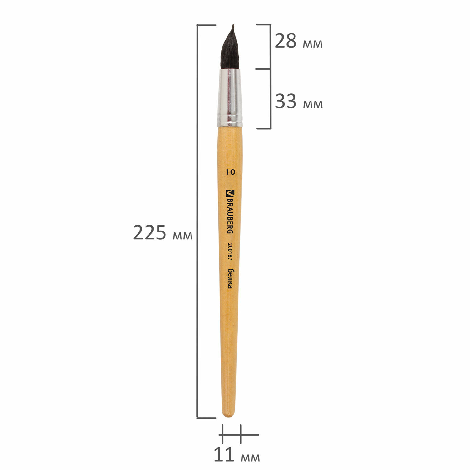 Кисть BRAUBERG, белка, круглая, № 10, 200187