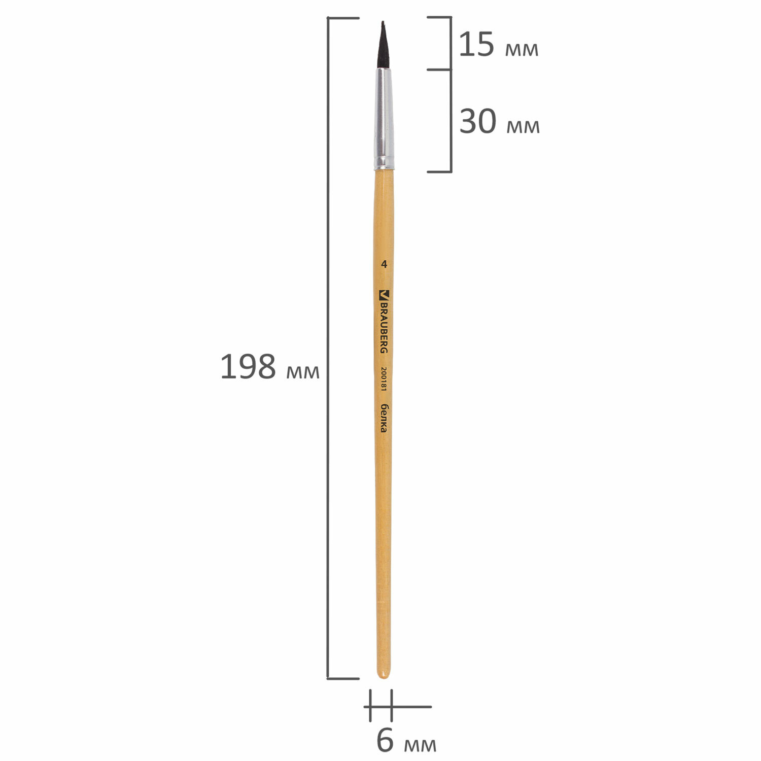 Кисть BRAUBERG, белка, круглая, № 4, 200181