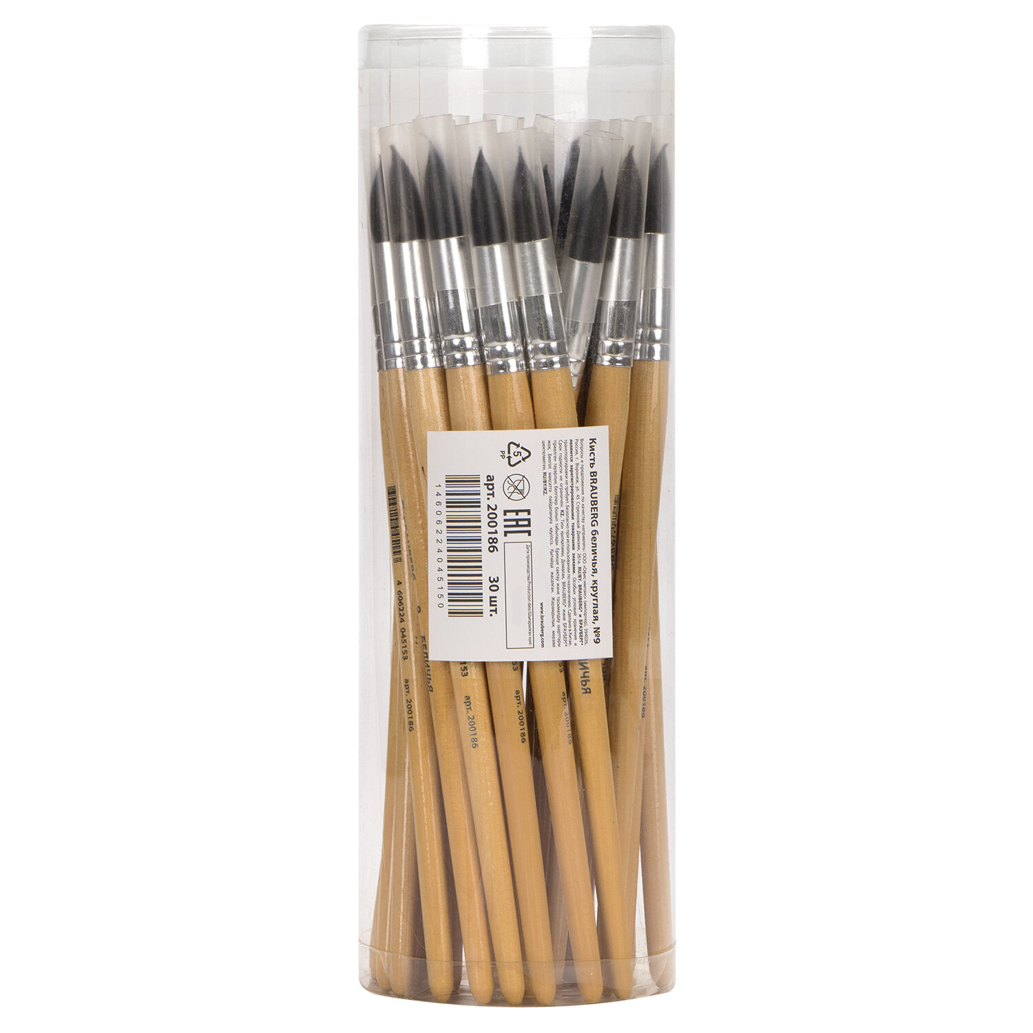 - Кисть BRAUBERG, белка, круглая, № 9, 200186