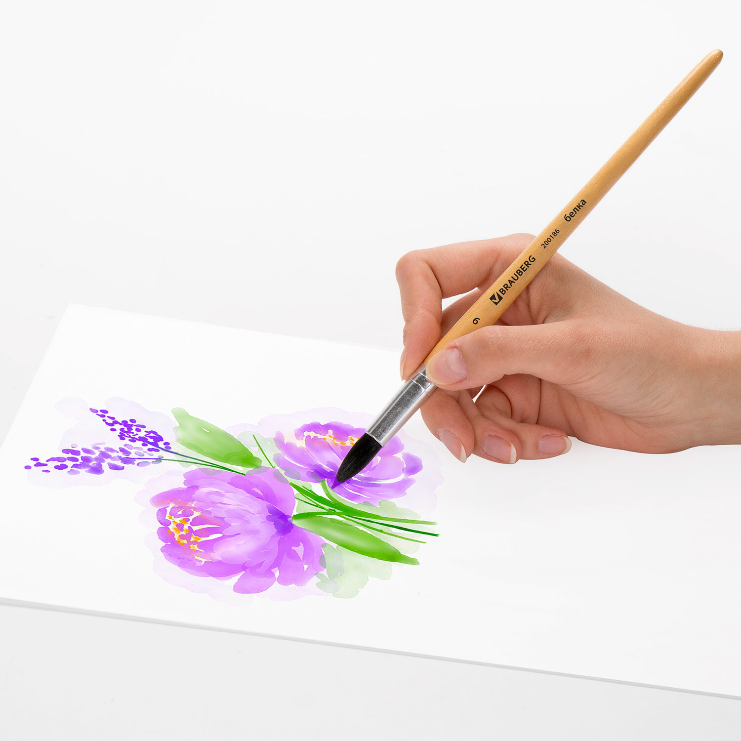Кисть из волоса белки отлично впитывает и отдает краску, хорошо держит форму, долговечна и надежна. Кисть № 9 позволит прорисовывать детали и наносить крупные мазки и линии. Деревянную лакированную рукоятку кисти удобно держать в руке. Кисть BRAUBERG, белка, круглая, № 9, 200186