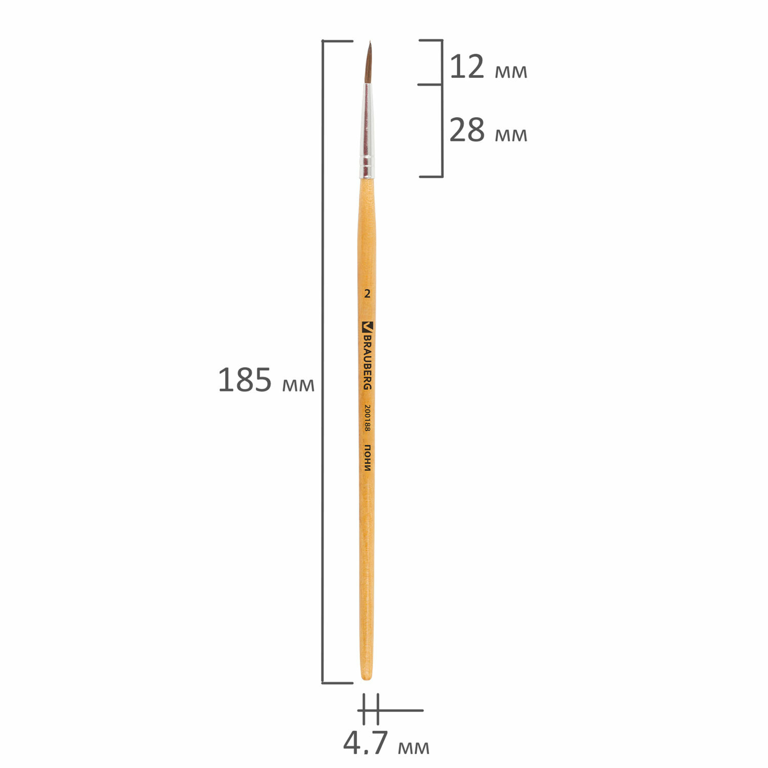 Кисть BRAUBERG, пони, круглая, № 2, 200188