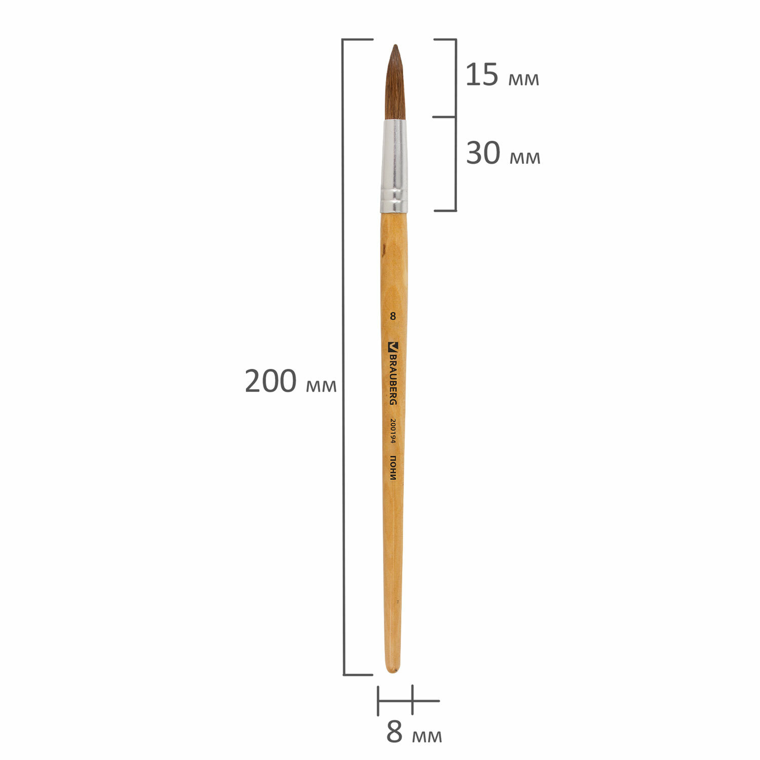 Кисть BRAUBERG, пони, круглая, № 8, 200194
