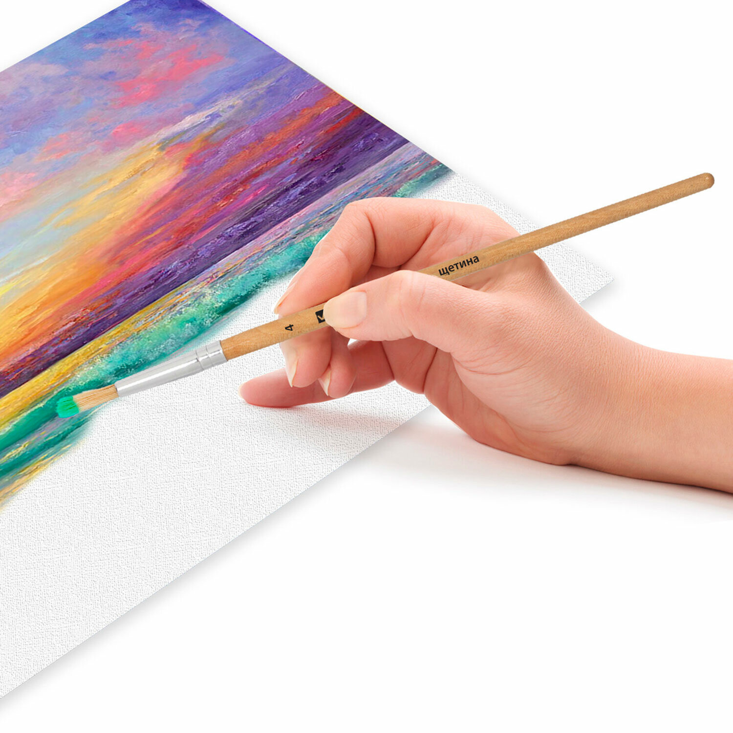 Кисть из щетины обладает высокой упругостью, хорошо держит форму, долговечна и надежна. Кисть № 4 позволит прорисовывать детали. Деревянную лакированную рукоятку кисти удобно держать в руке. Кисть BRAUBERG, щетина, круглая, № 4, 200195