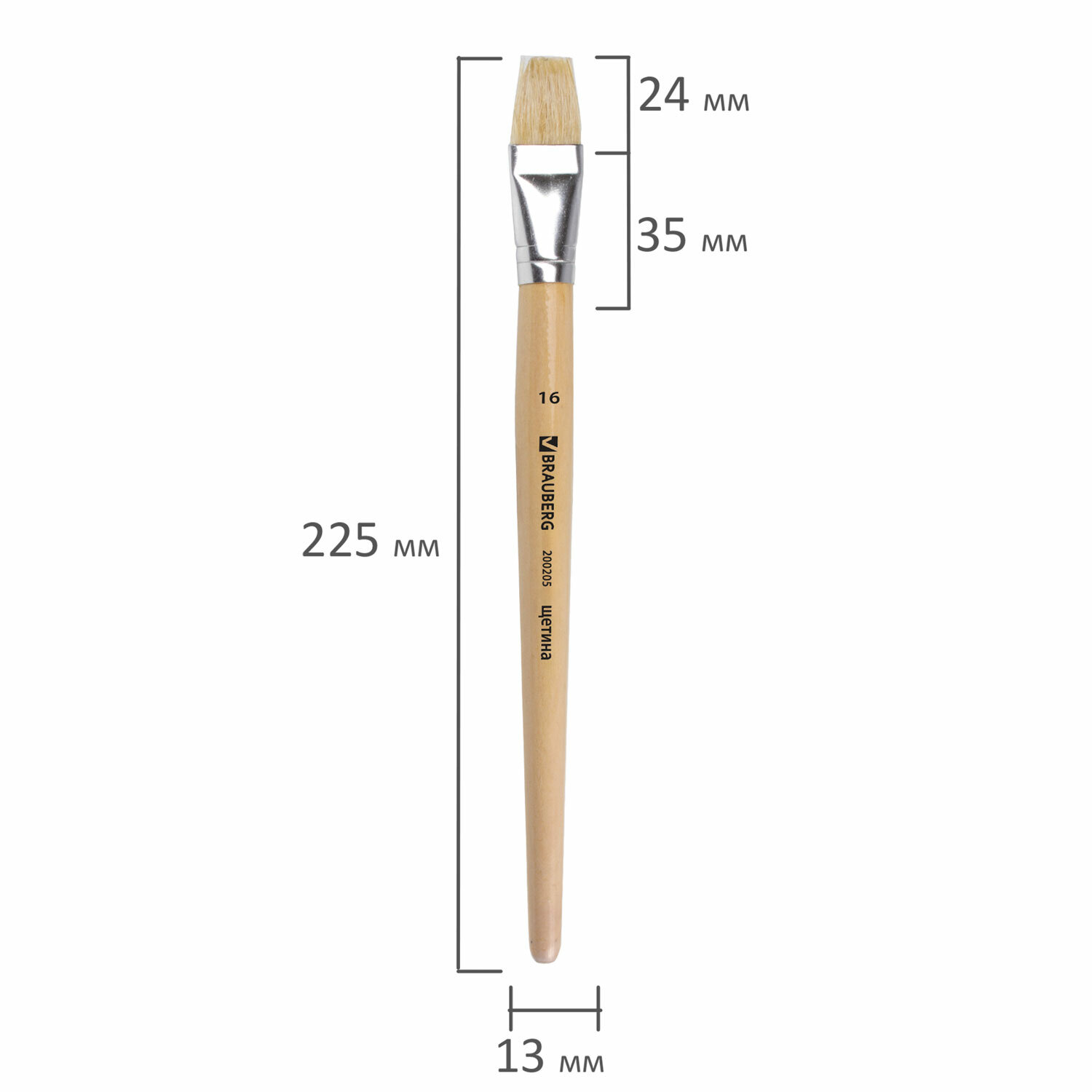 - Кисть BRAUBERG, щетина, плоская, № 16, 200205