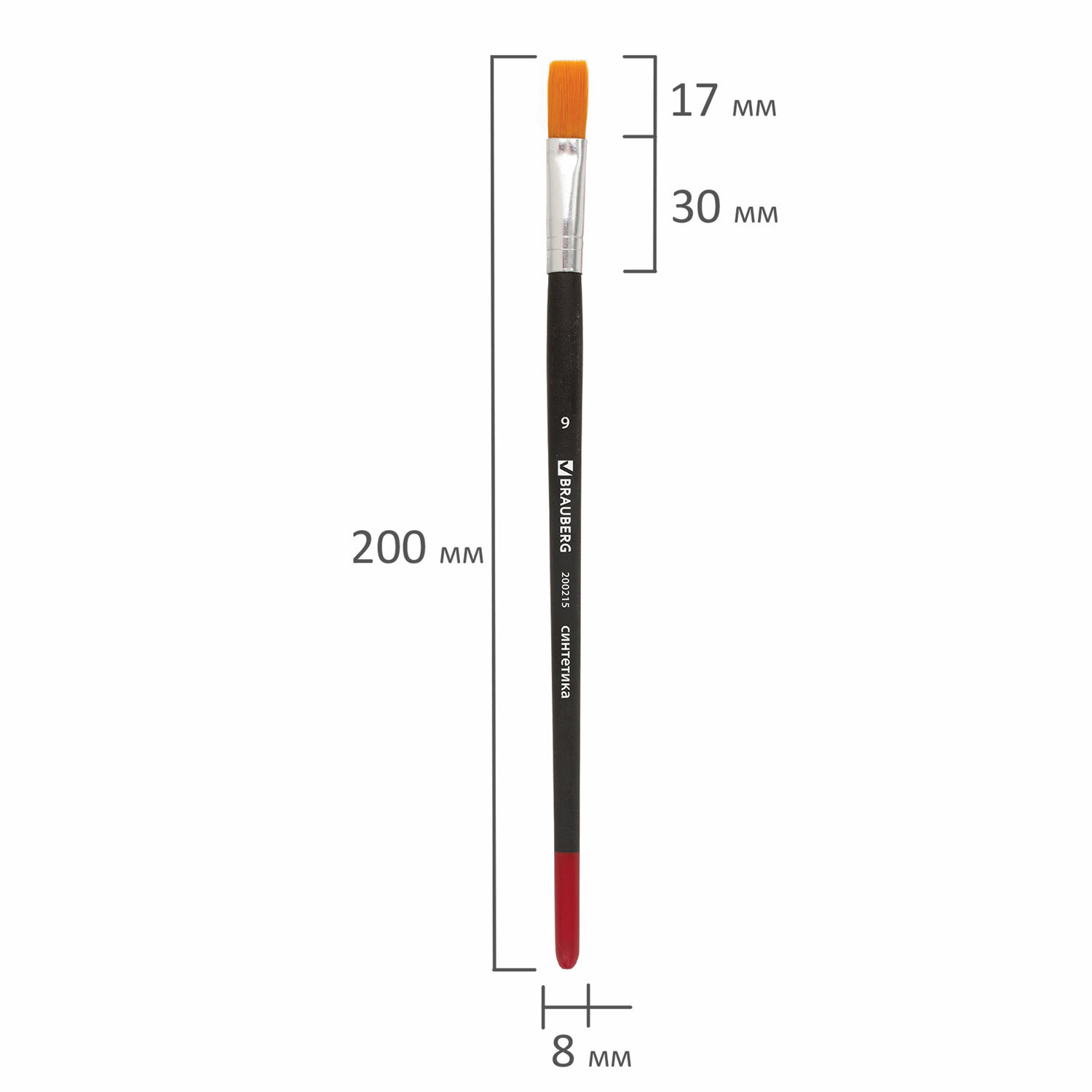 - Кисть BRAUBERG, синтетика, плоская, № 9, 200215