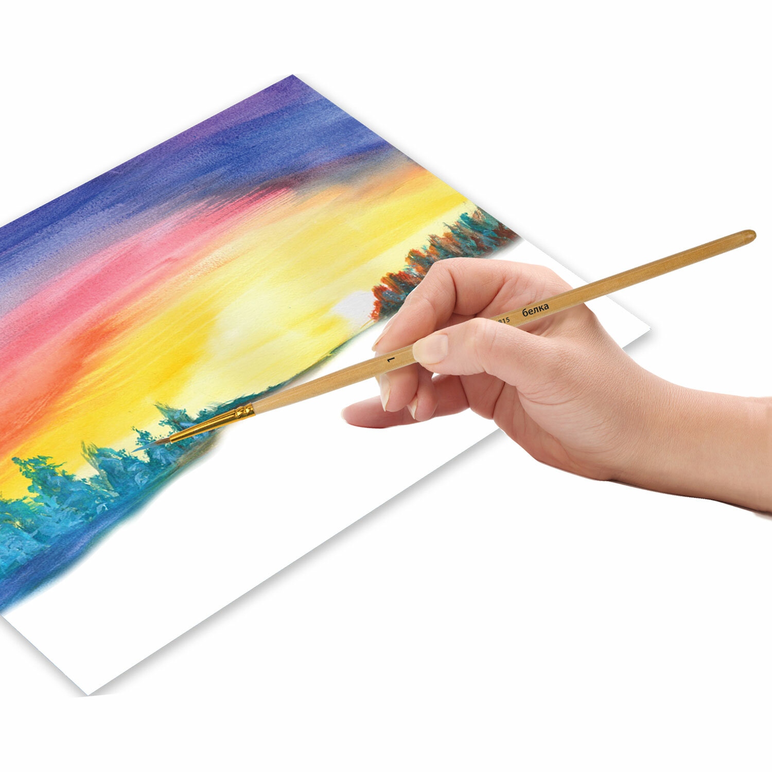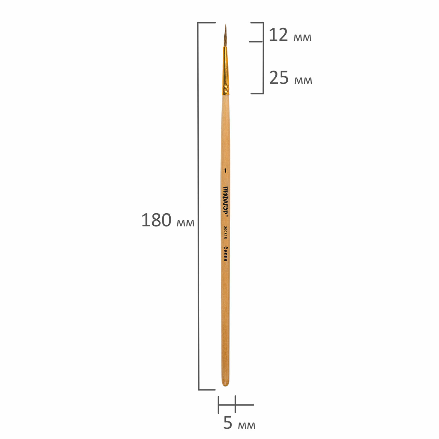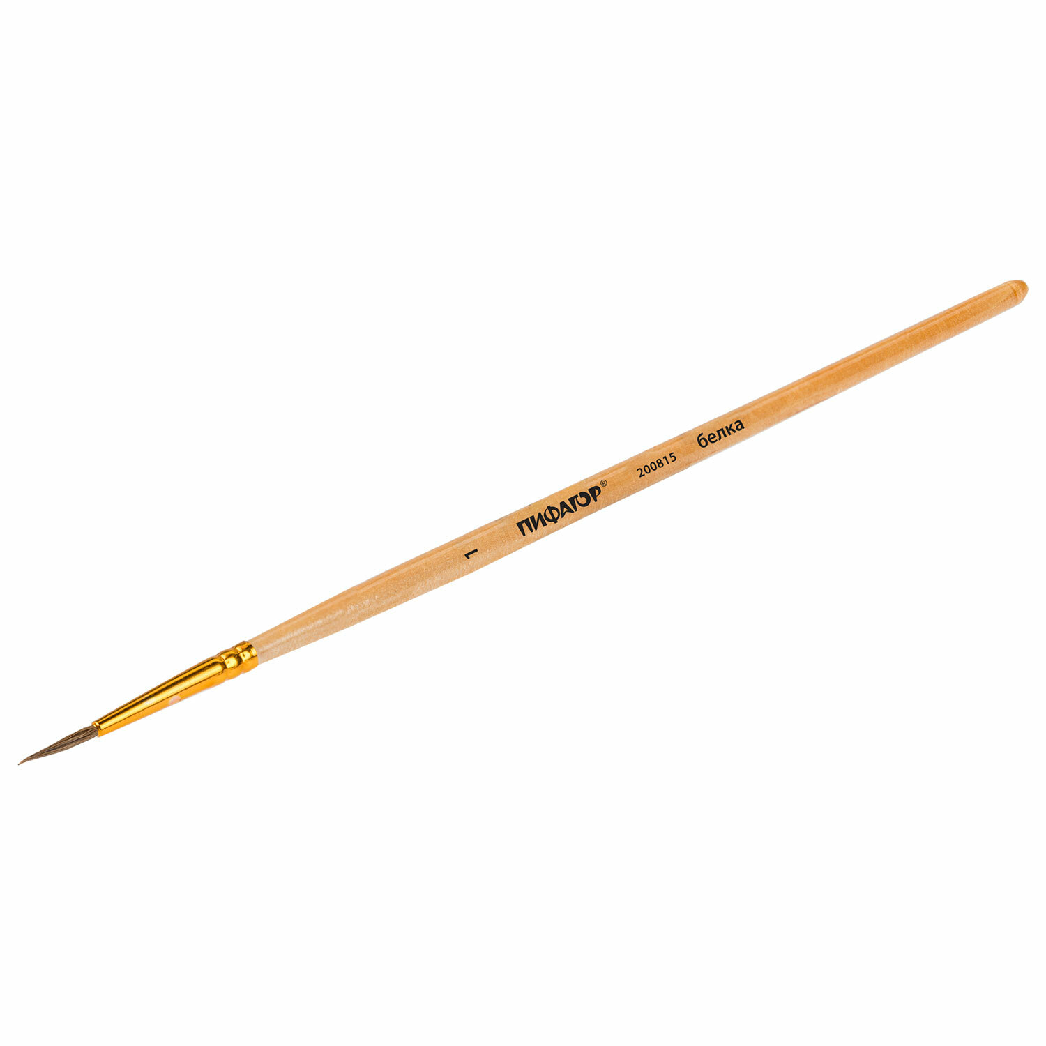 - Кисть ПИФАГОР, БЕЛКА, круглая, № 1, деревянная лакированная ручка, с колпачком, 200815