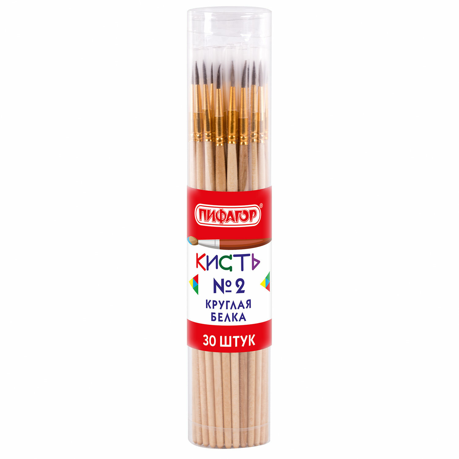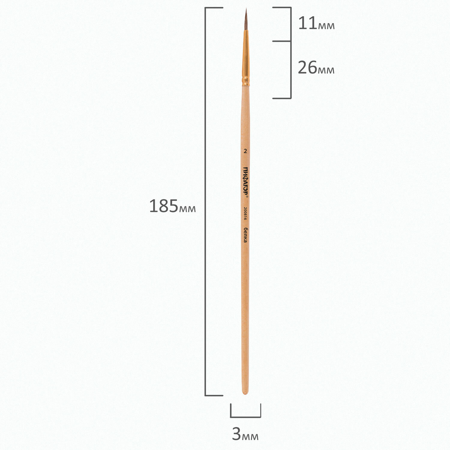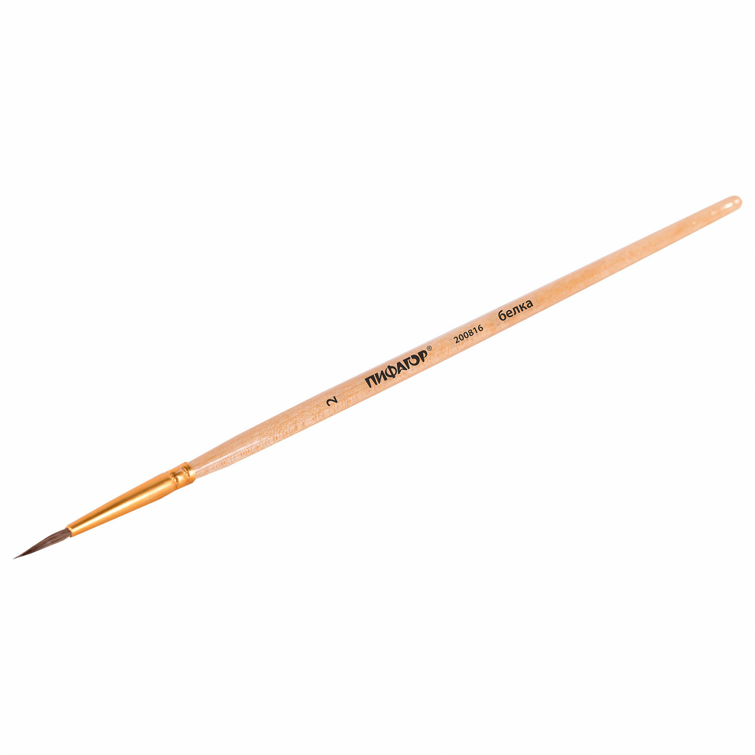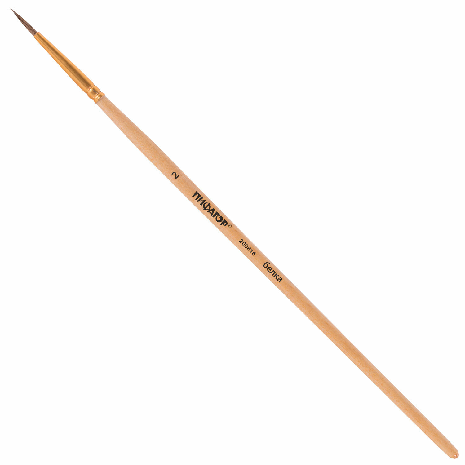 - Кисть ПИФАГОР, БЕЛКА, круглая, № 2, деревянная лакированная ручка, с колпачком, 200816