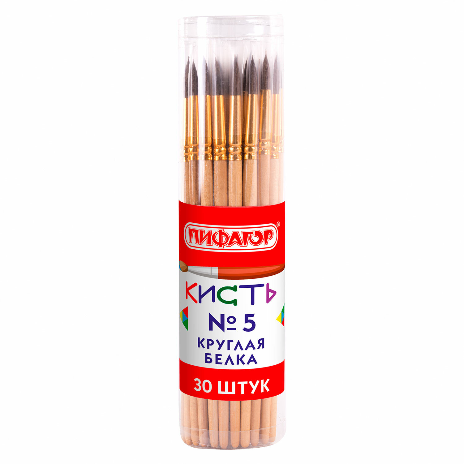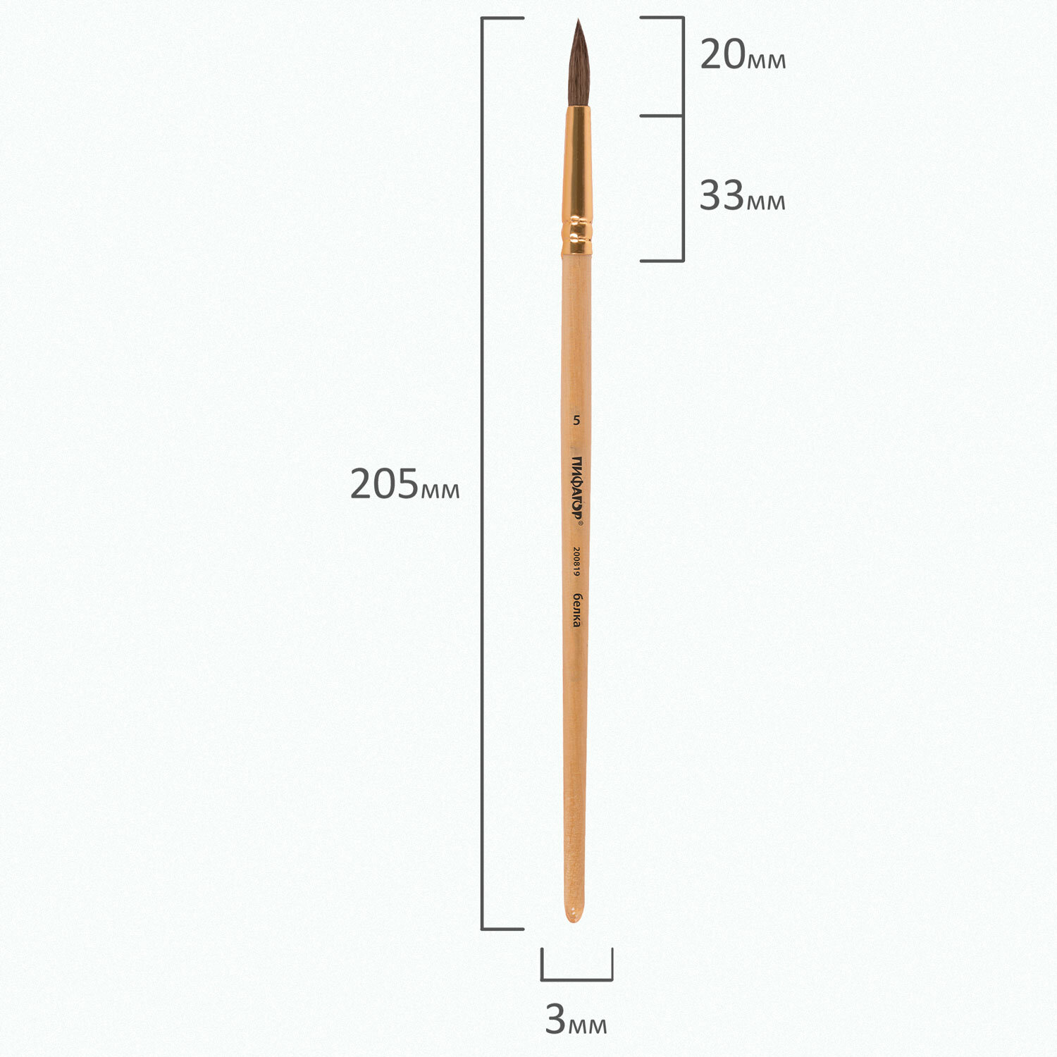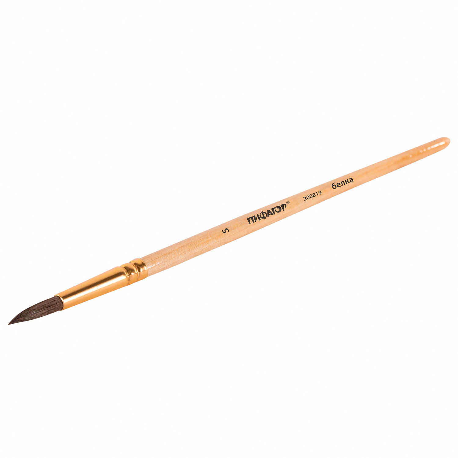 - Кисть ПИФАГОР, БЕЛКА, круглая, № 5, деревянная лакированная ручка, с колпачком, 200819