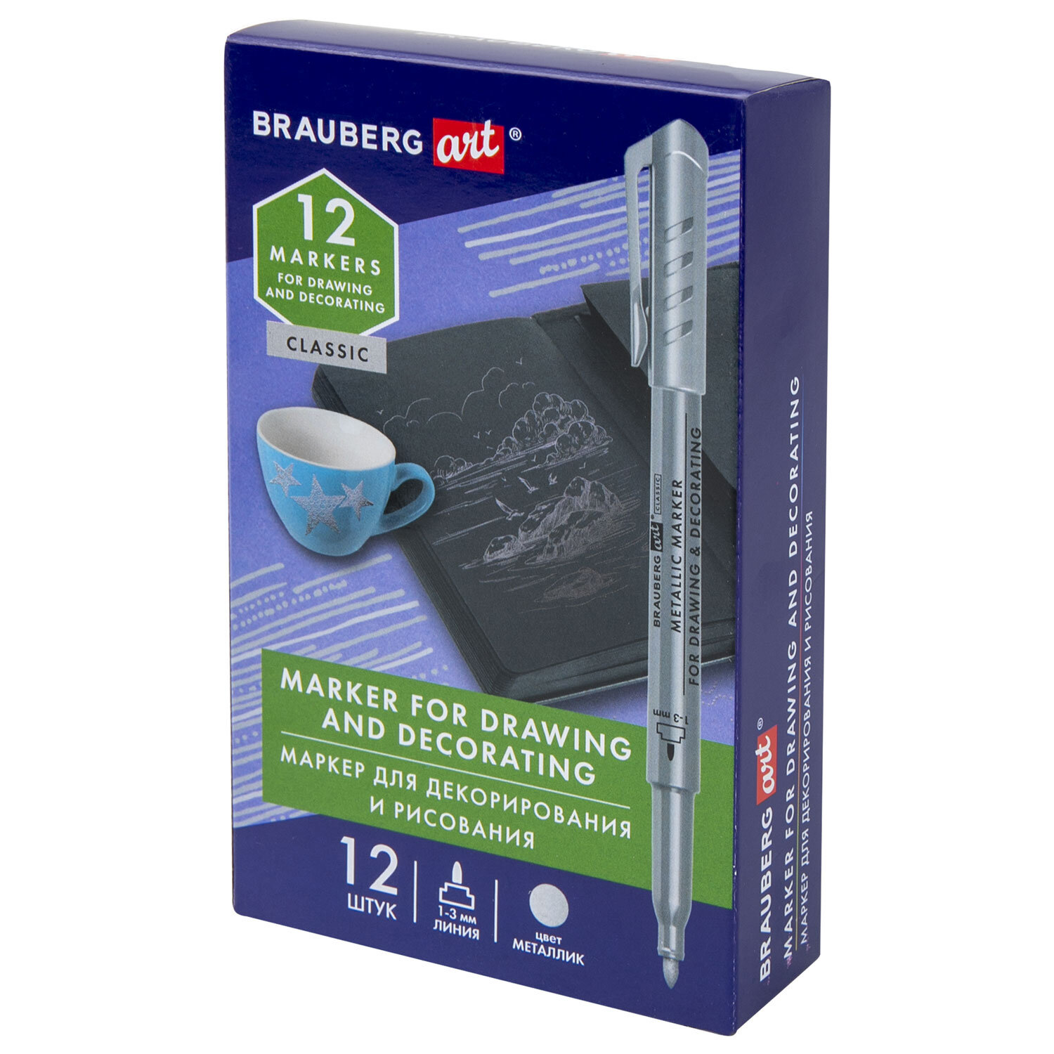 - Маркер для декорирования и рисования СЕРЕБРИСТЫЙ BRAUBERG ART METALLIC, линия письма 1-3 мм, 152439