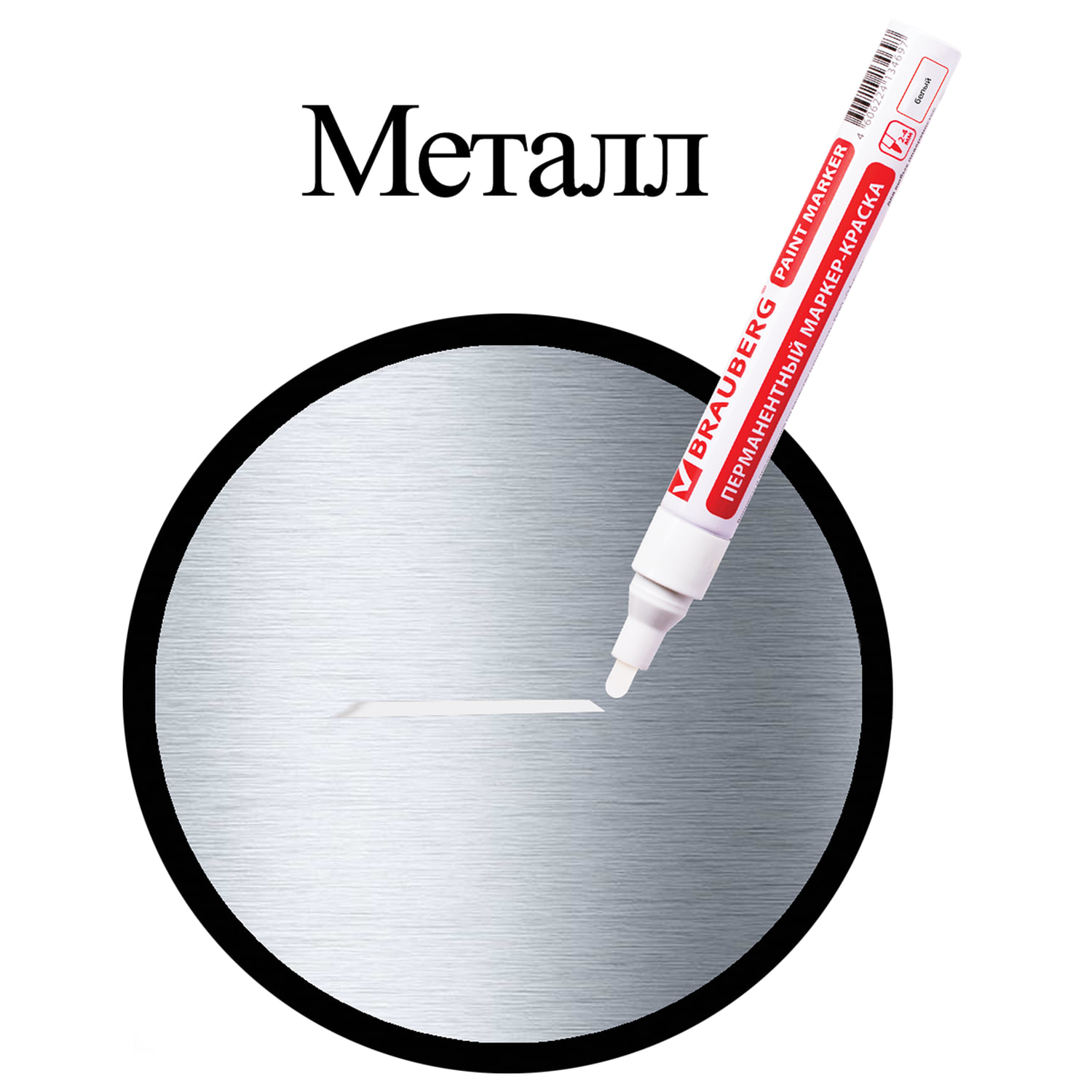 - Маркер-краска лаковый (paint marker) 4 мм, БЕЛЫЙ, БЕЗ КСИЛОЛА (без запаха), алюминий, BRAUBERG PROFESSIONAL, 150878