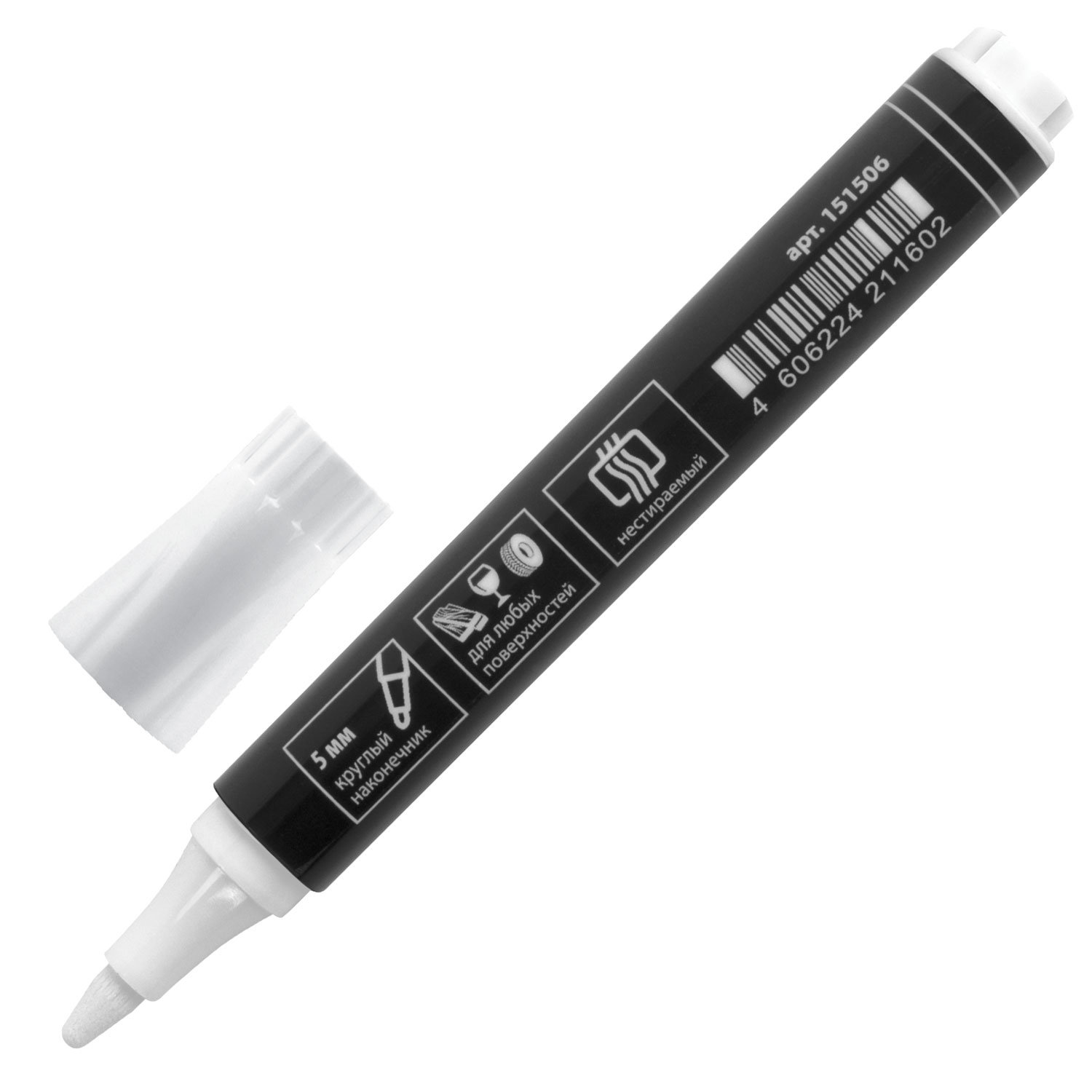 - Маркер перманентный БЕЛЫЙ, BRAUBERG "W5", круглый наконечник 5 мм, 151506