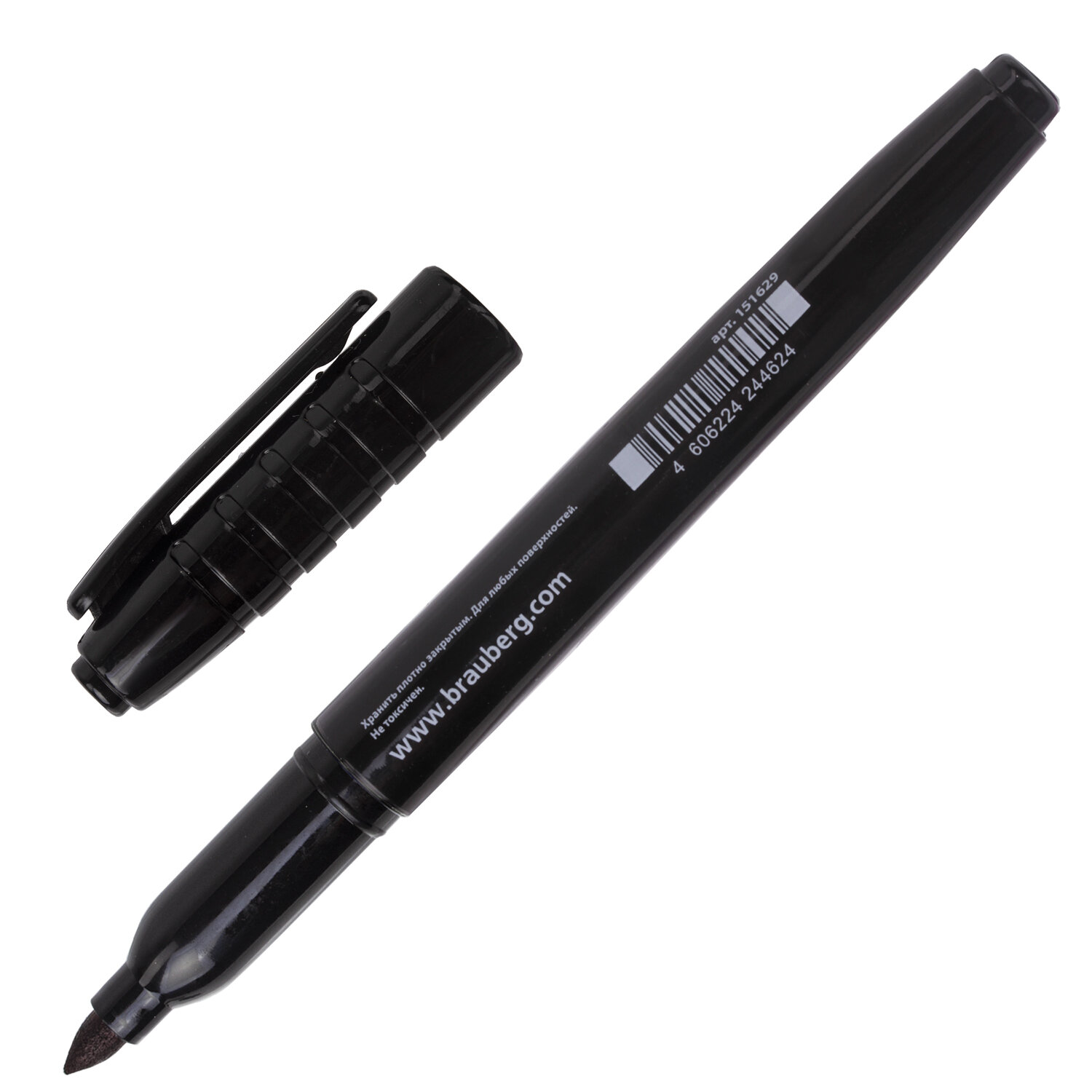 Изделие не перезаправляется. Плотно закрывается колпачком, что предотвращает высыхание наконечника и чернил. Цвет колпачка соответствует цвету чернил. Маркер перманентный BRAUBERG, ЧЕРНЫЙ, круглый наконечник, 1,5-3 мм, 151629