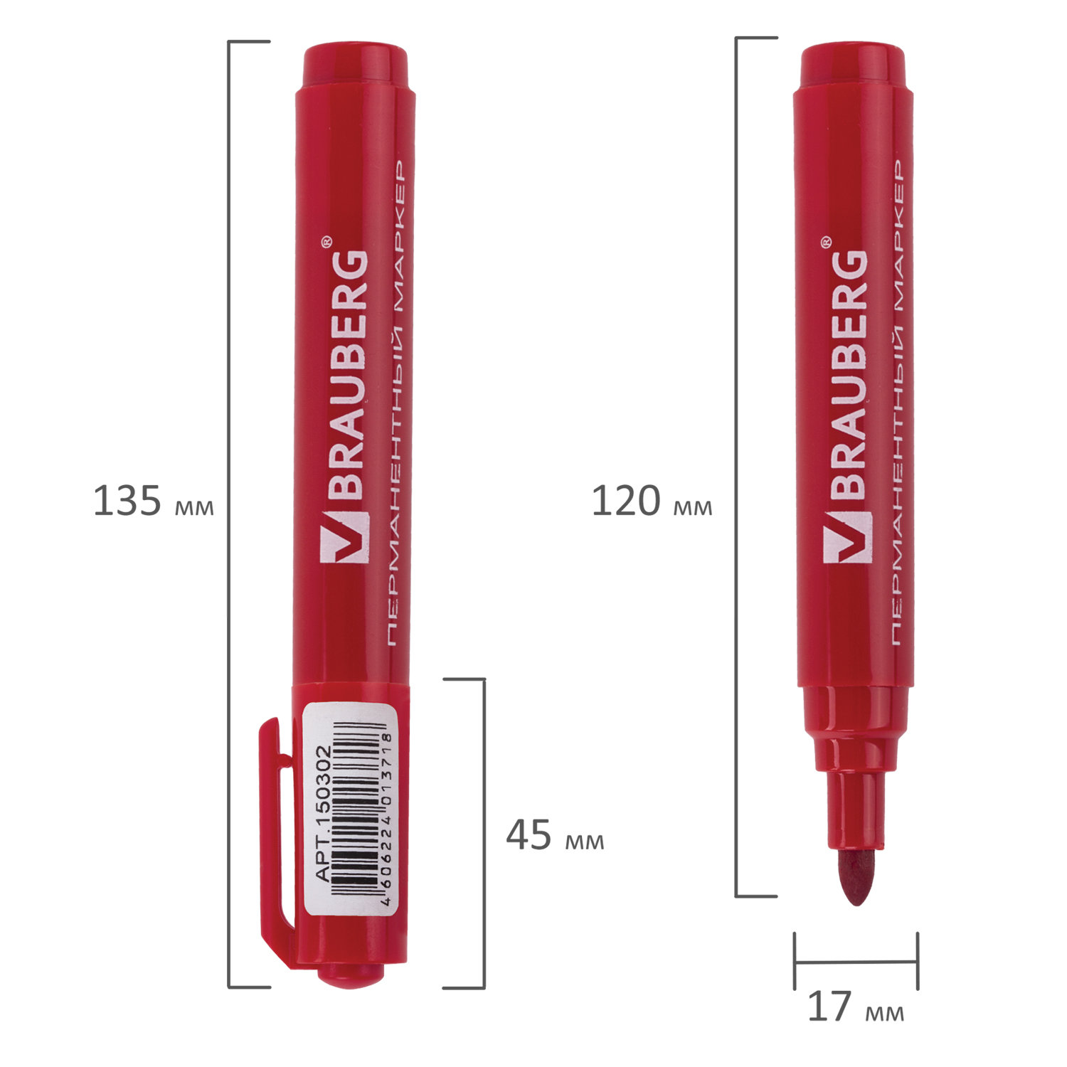 - Маркер перманентный BRAUBERG "Classic", КРАСНЫЙ, круглый наконечник, 3 мм, с клипом,150302