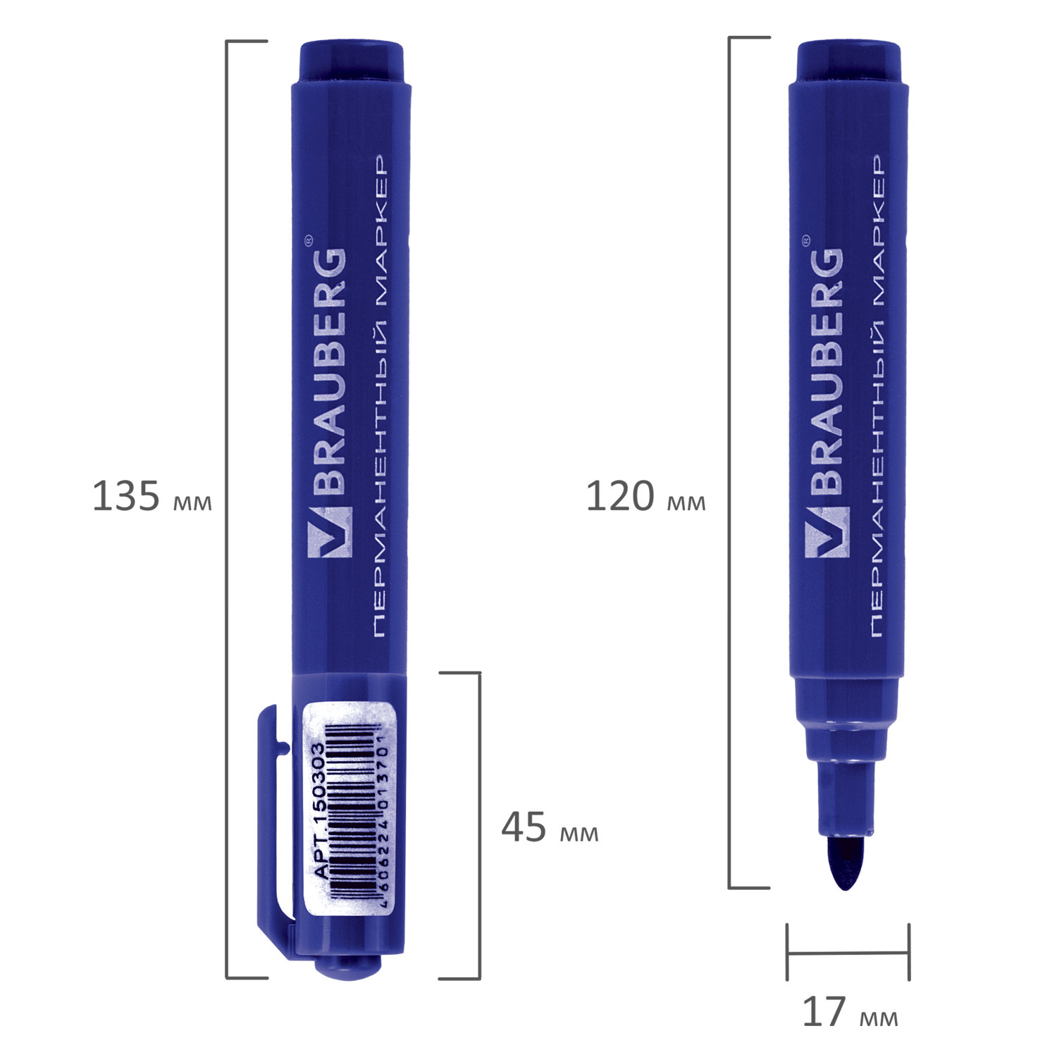 - Маркер перманентный BRAUBERG "Classic", СИНИЙ, круглый наконечник, 3 мм, с клипом, 150301