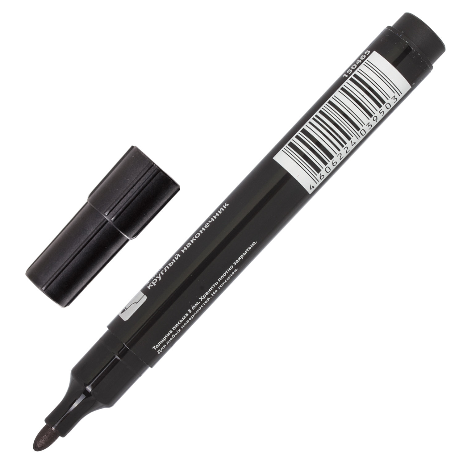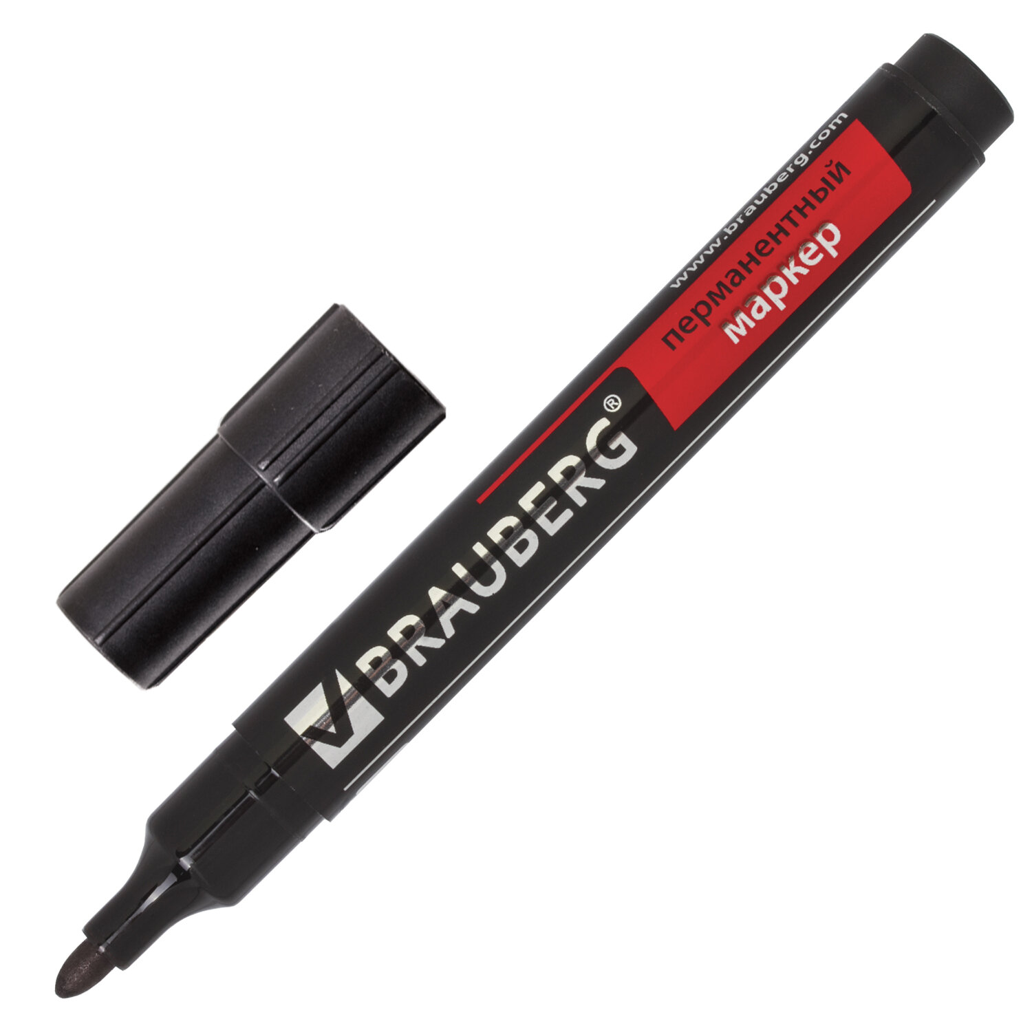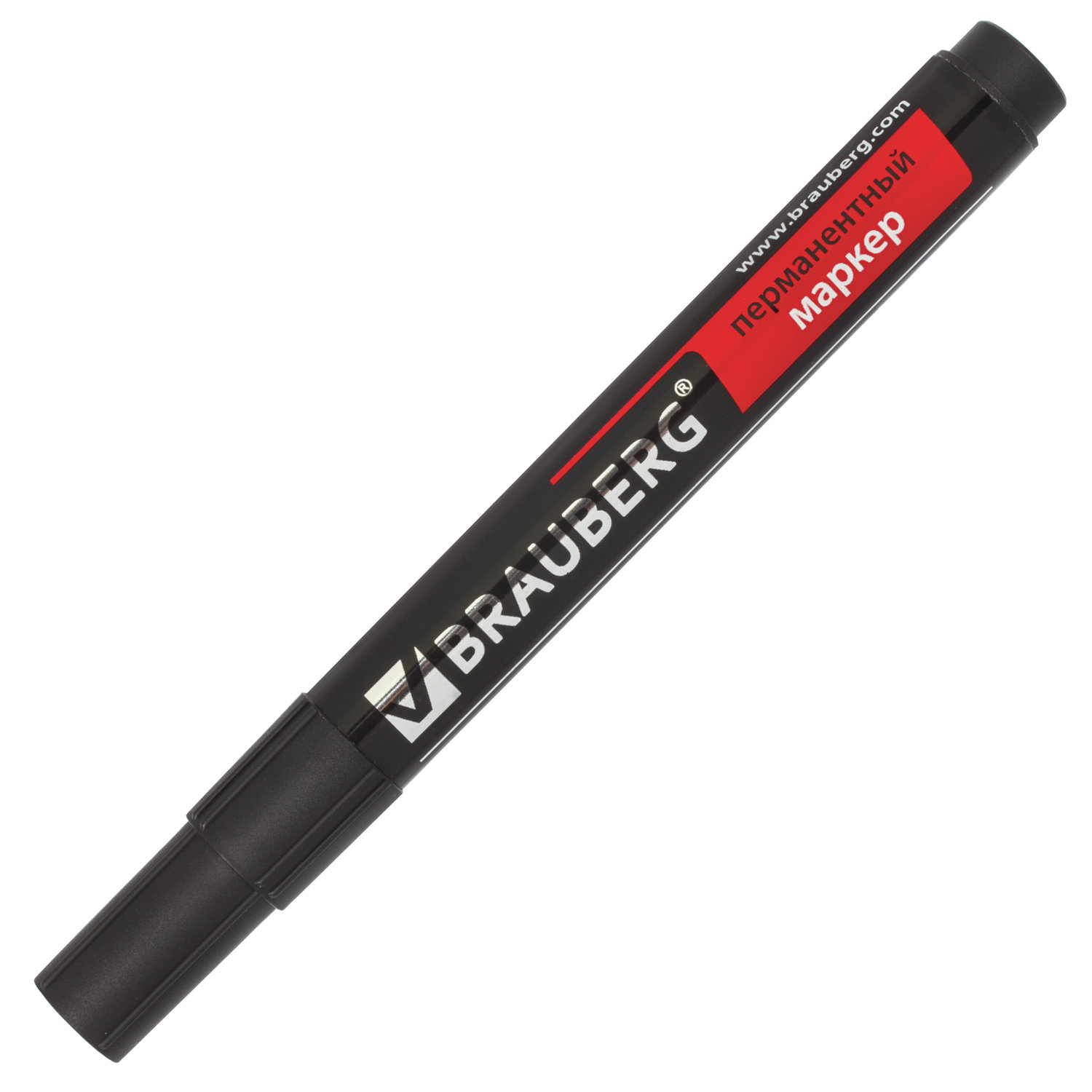 - Маркер перманентный BRAUBERG "Contract", ЧЕРНЫЙ, круглый наконечник, 3 мм, 150465