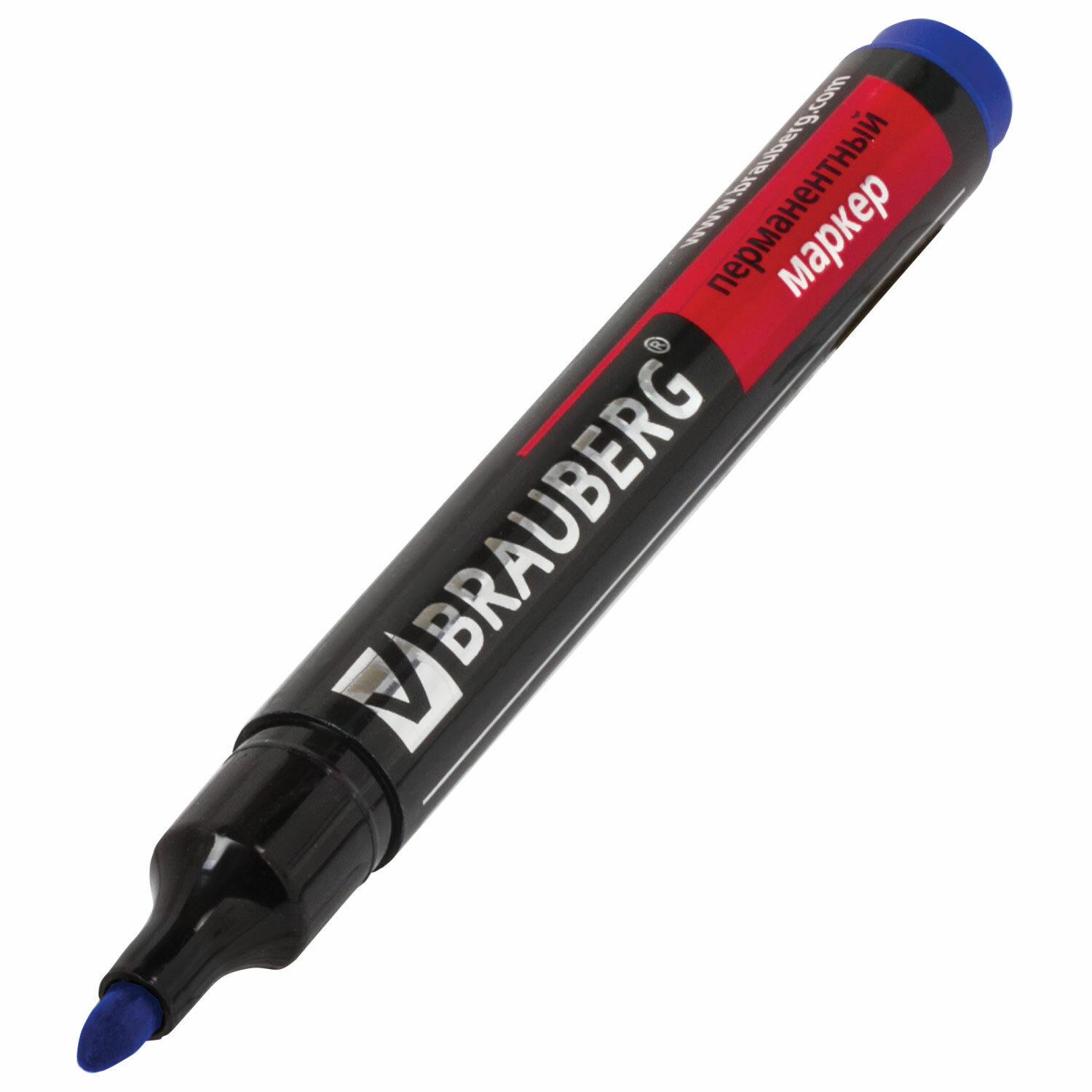 - Маркер перманентный BRAUBERG "Contract", СИНИЙ, круглый наконечник, 3 мм, 150466