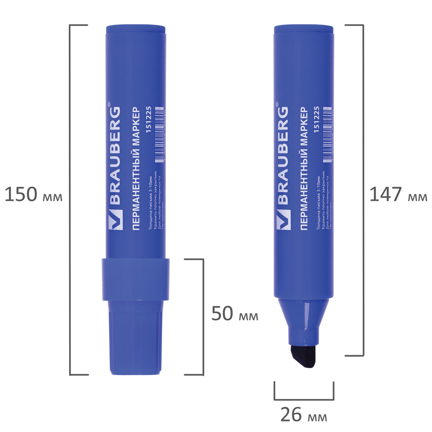 Маркер перманентный BRAUBERG "JUMBO", СИНИЙ, ШИРОКАЯ ЛИНИЯ ПИСЬМА, скошенный наконечник, 3-10 мм, 151225