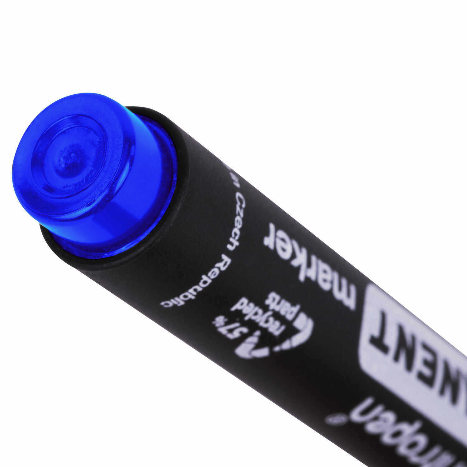 Перманентный маркер на спиртовой основе с закругленным наконечником. Колпачок соответствует цвету чернил. Чернила синего цвета высокой степени светостойкости, термостойкие до 100 градусов.