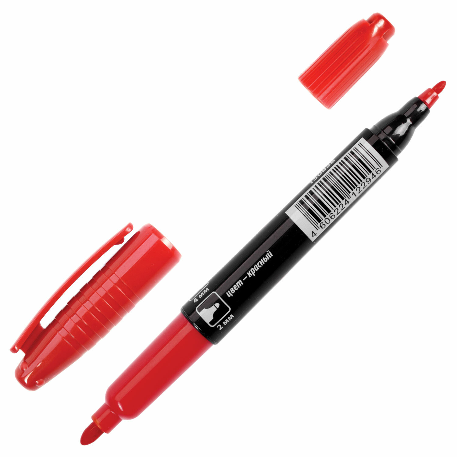 - Маркер перманентный двусторонний BRAUBERG, КРАСНЫЙ, круглый наконечник 2/4 мм, 150838