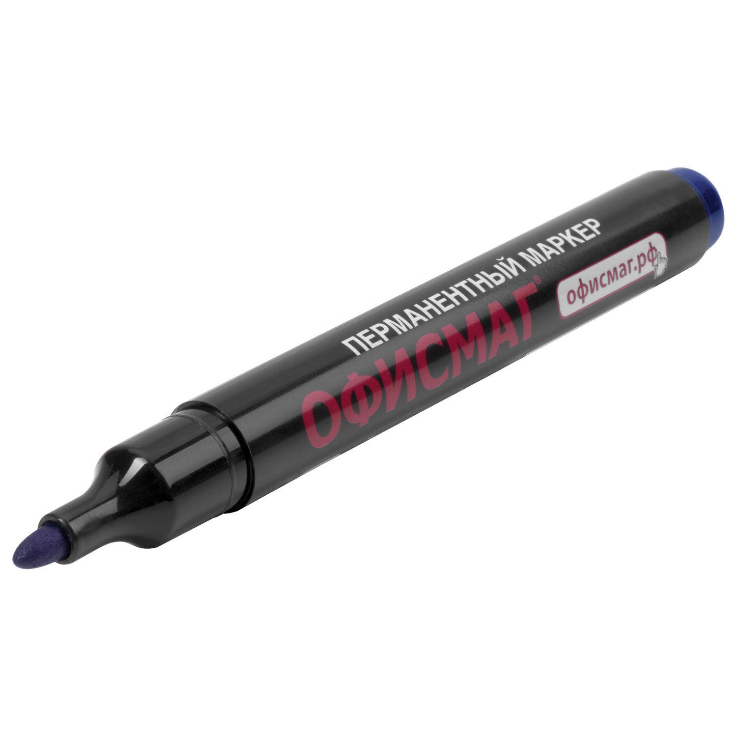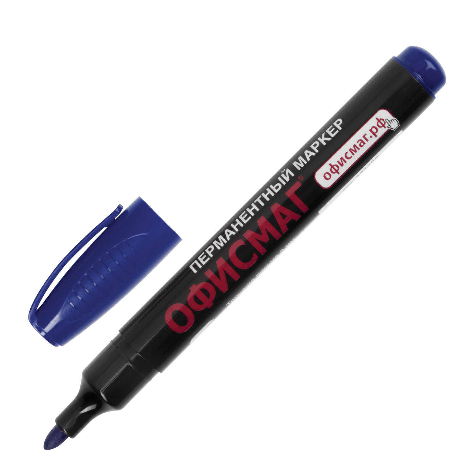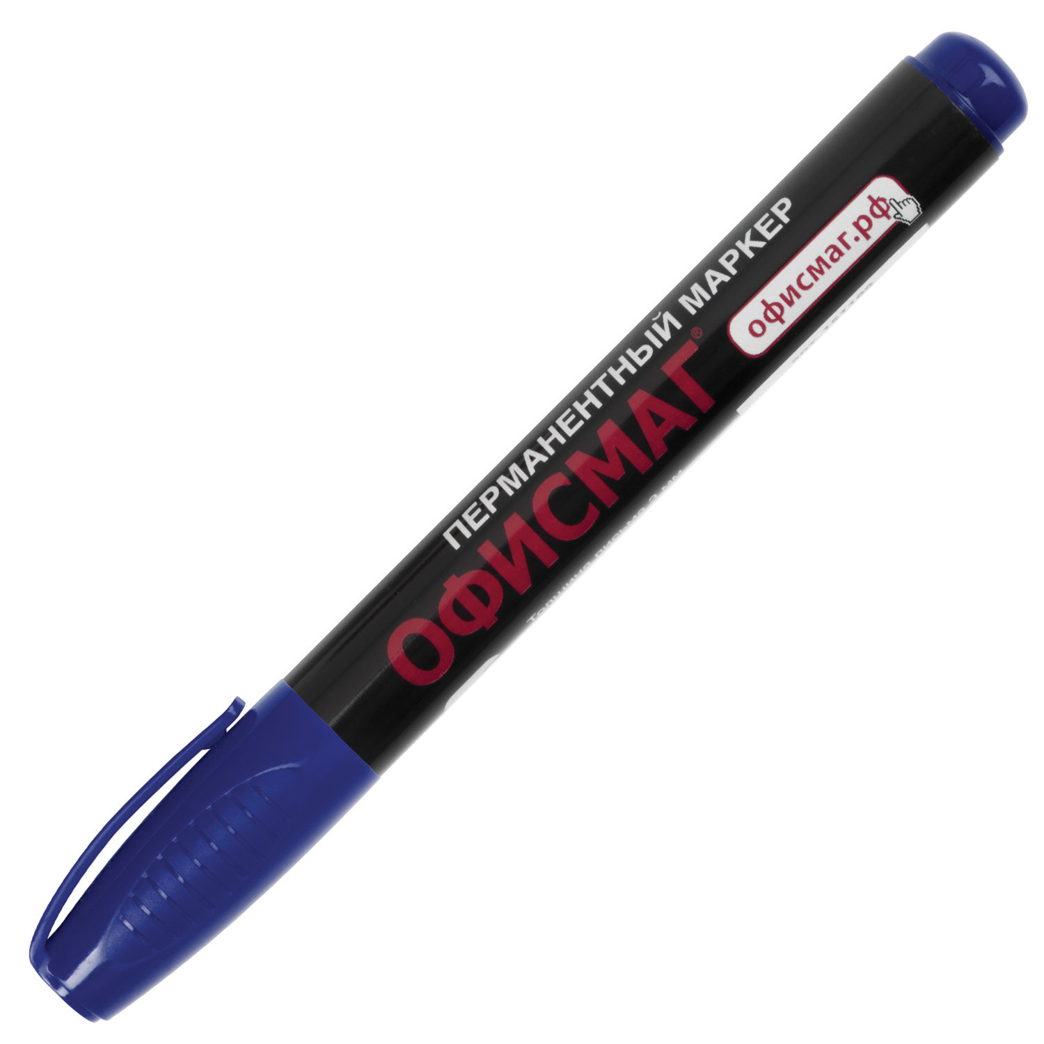 - Маркер перманентный ОФИСМАГ, СИНИЙ, круглый наконечник, 3 мм, с клипом, 151198