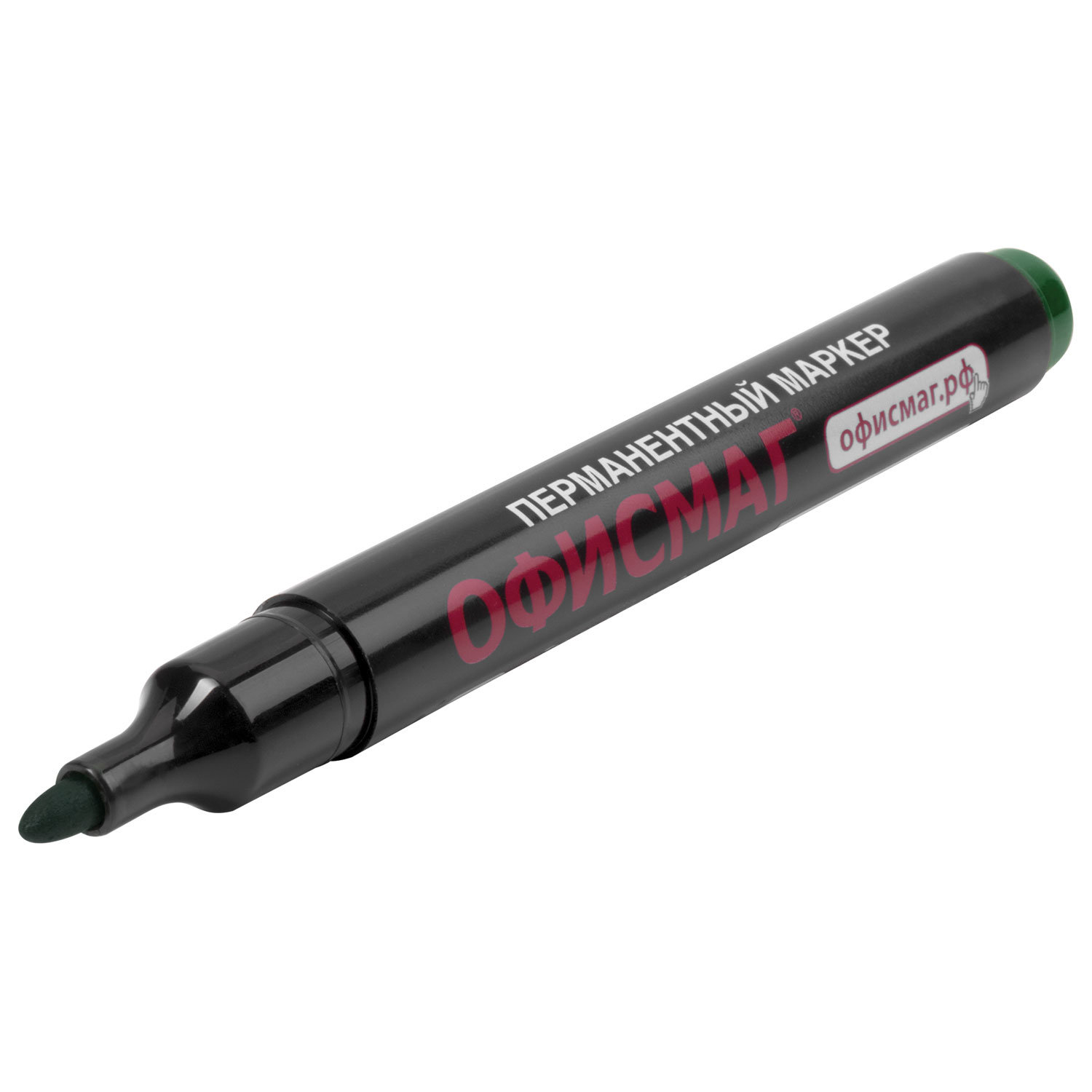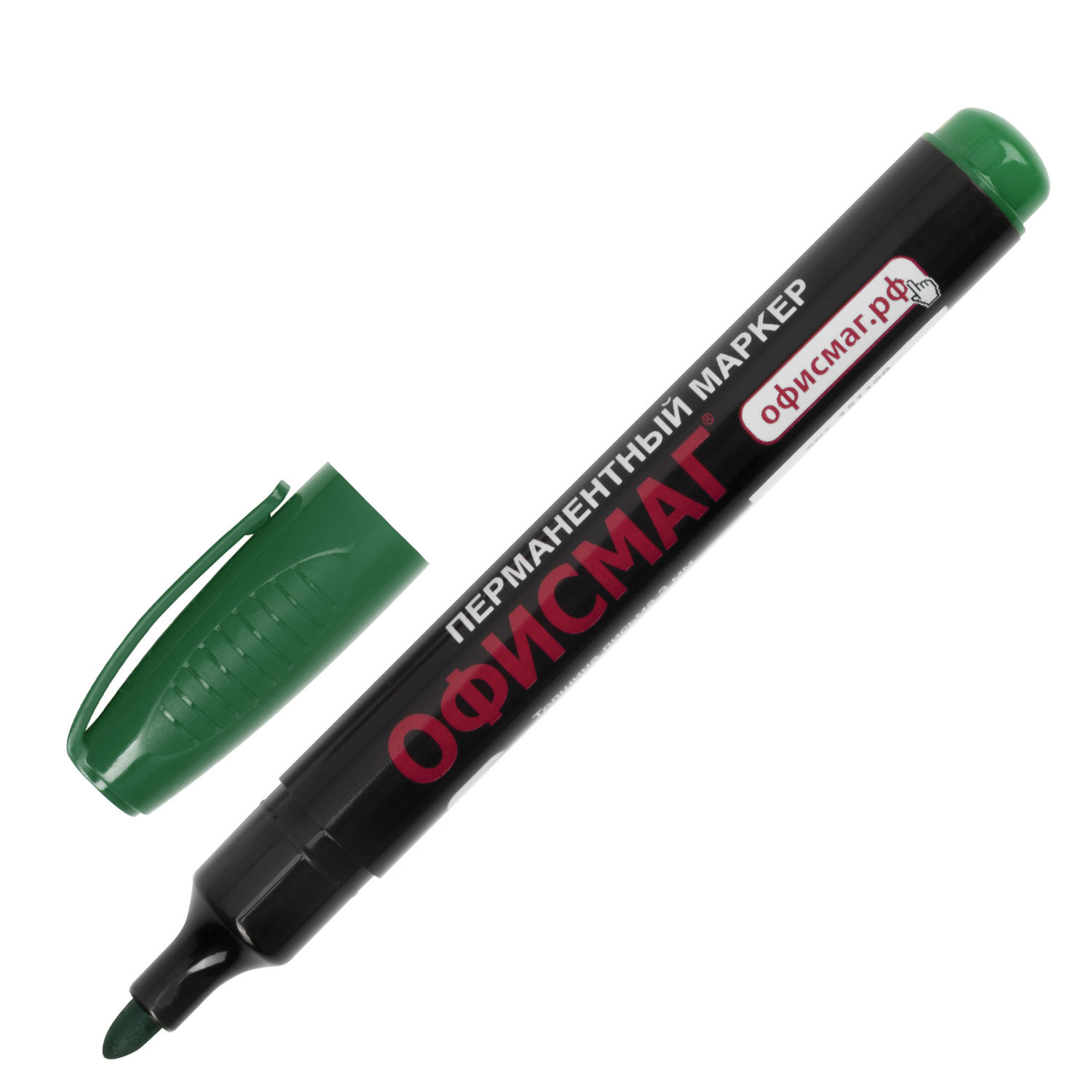 Маркер перманентный ОФИСМАГ, ЗЕЛЕНЫЙ, круглый наконечник, 3 мм, с клипом, 151200