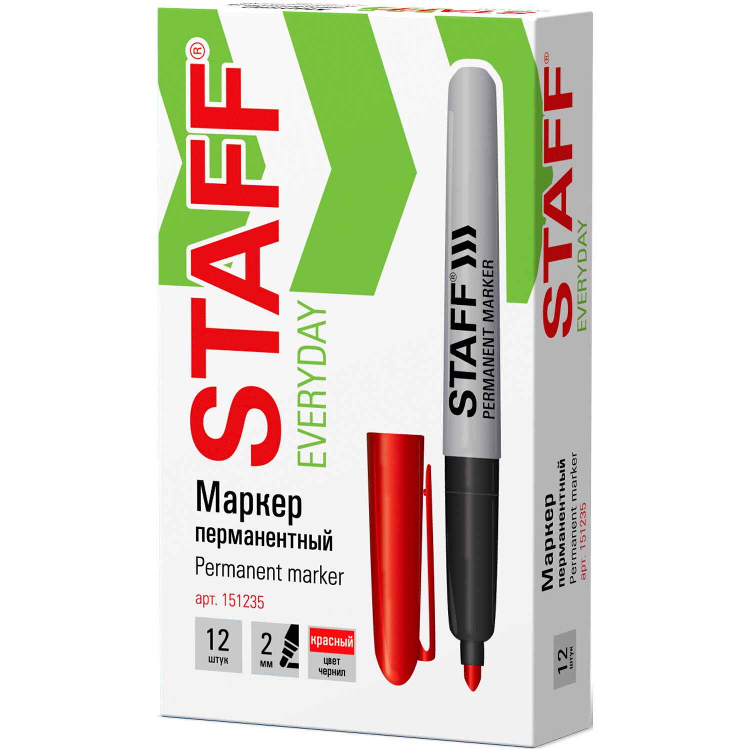 Это товар эконом-сегмента, поэтому он отличается привлекательной ценой. Товар обладает базовым набором характеристик и простой упаковкой, при этом полностью соответствует основным требованиям потребителей. Маркер перманентный STAFF EVERYDAY PM-233, КРАСНЫЙ, эргономичный корпус, круглый наконечник 2 мм, 151235