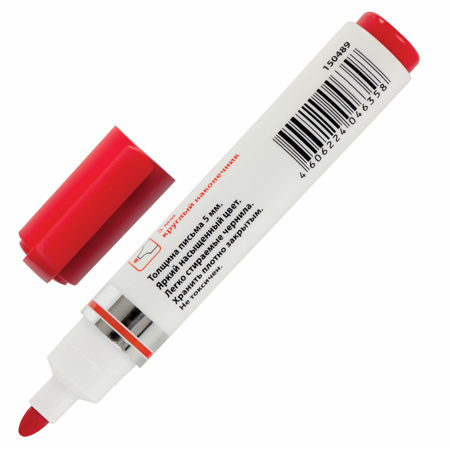 Маркер для доски красного цвета обладает круглым пластиковым корпусом диаметром 19 мм. Наконечник круглой формы обеспечивает толщину линии письма 5 мм, что позволяет писать крупным шрифтом, который будет хорошо виден. Благодаря спиртовой основе, чернила быстро высыхают и не оставляют разводов, легко стираются сухой губкой. Изделие не перезаправляется. Цвет колпачка соответствует цвету чернил. Маркер стираемый для белой доски КРАСНЫЙ, BRAUBERG "Neo", 5 мм, с клипом, 150489
